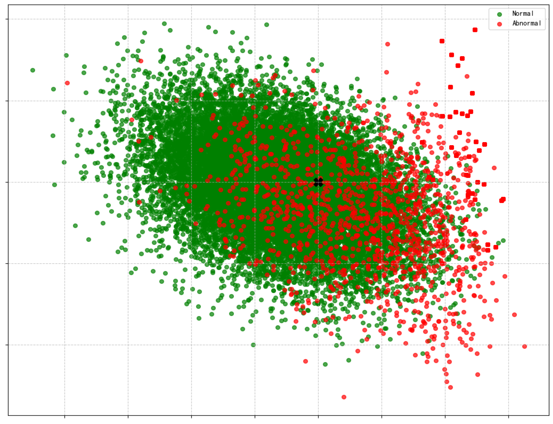 Figure 10, the density difference between the green normal data and the red abnormal data is not significant, resulting lead to unsatisfactory data classification results.