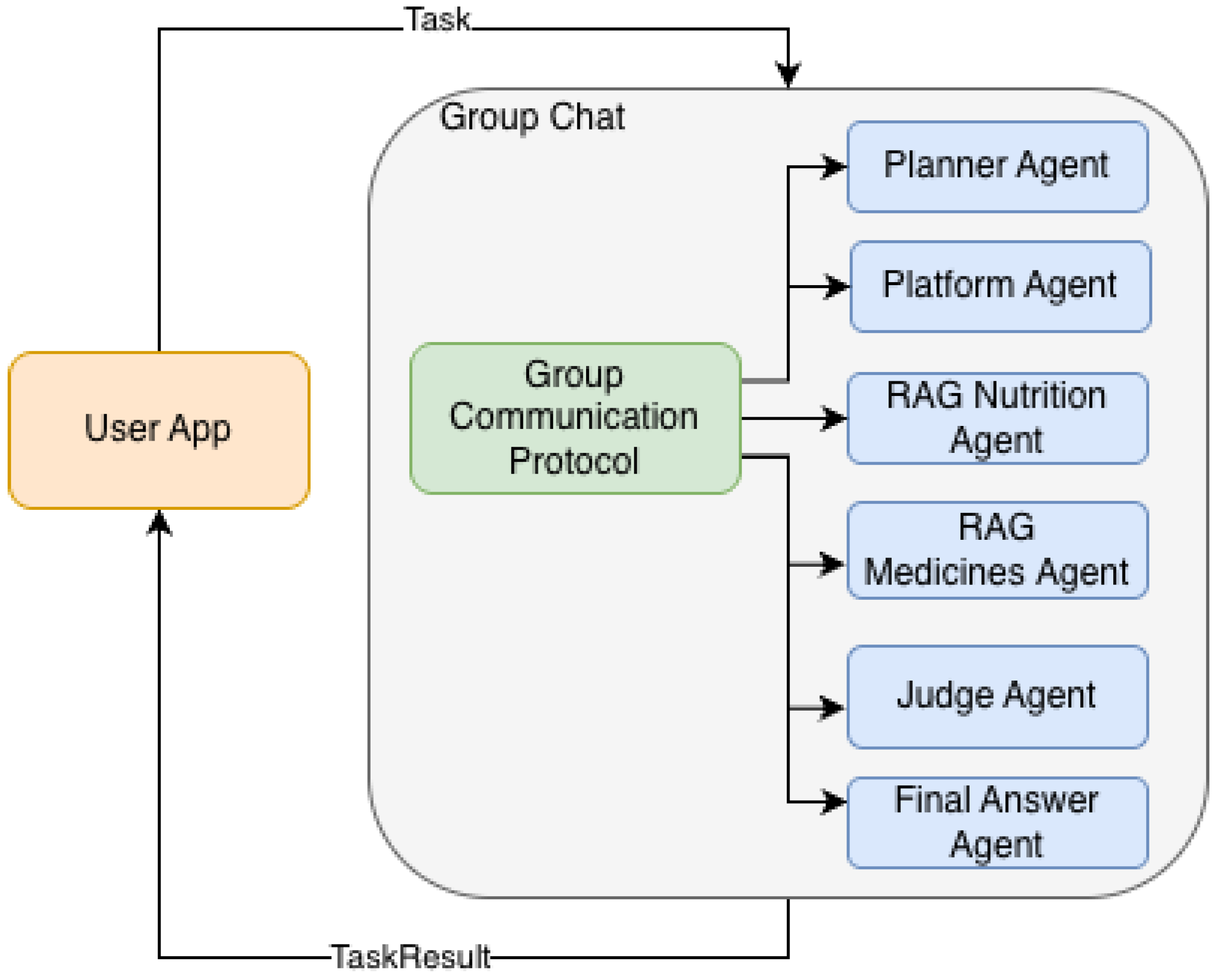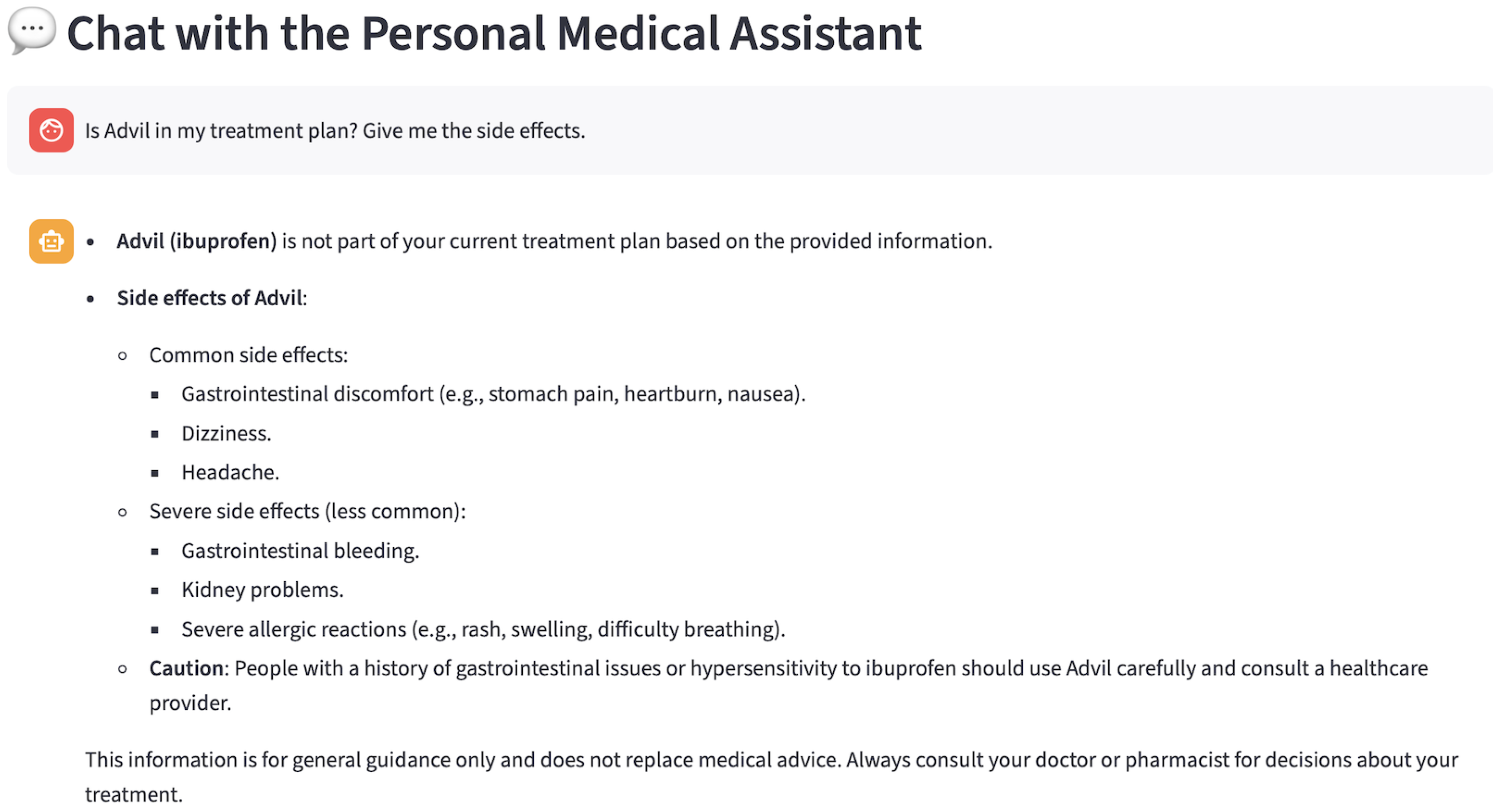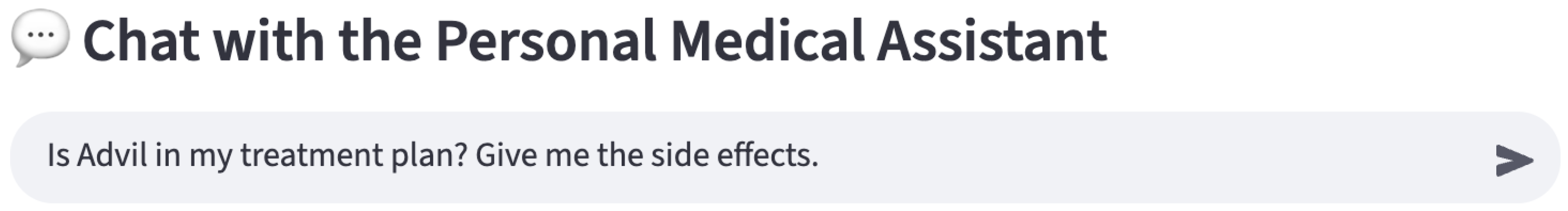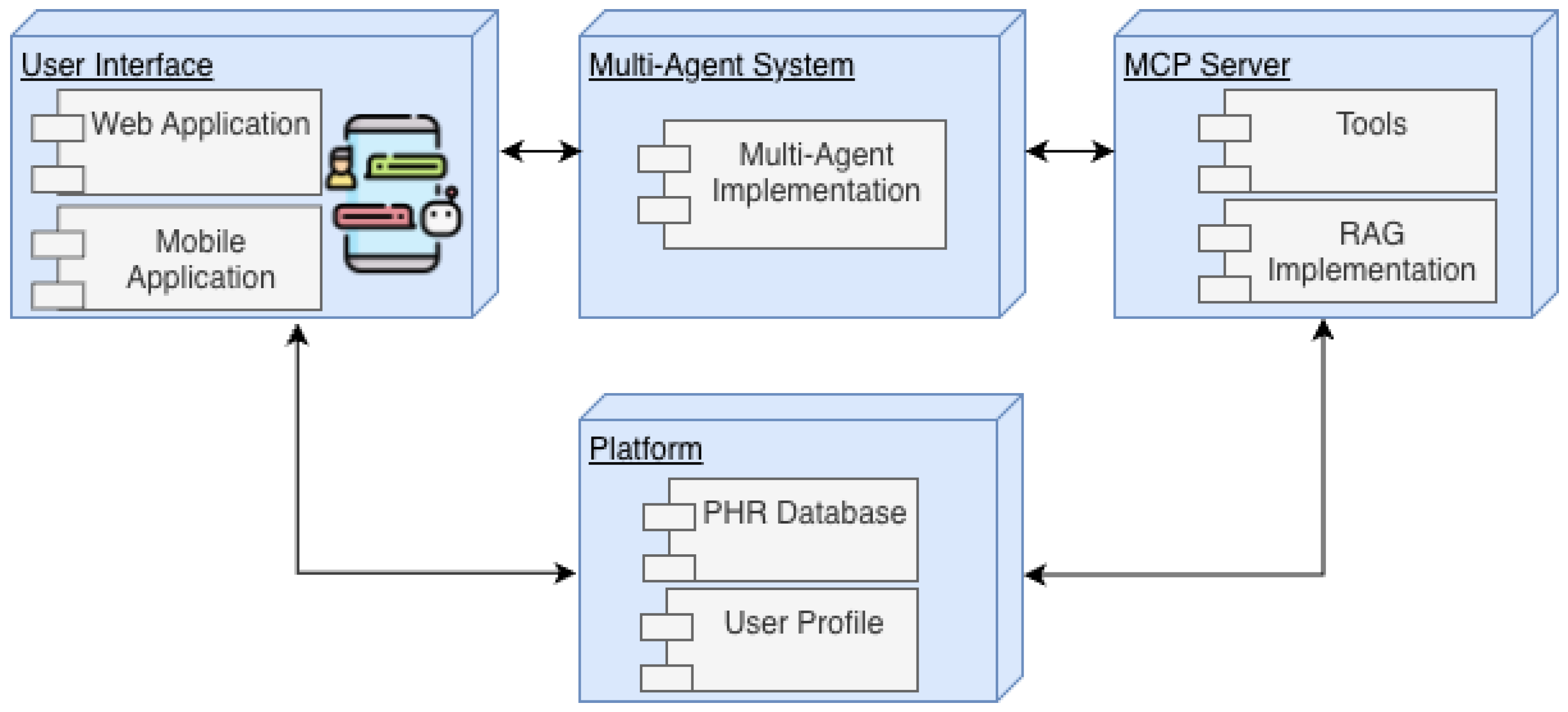 - Personal Drug Treatment Information with Additional Knowledge: The MAS fetches medication-related information from the PHR and applies RAG-based augmentation to provide validated, evidence-informed insights and up-to-date information.