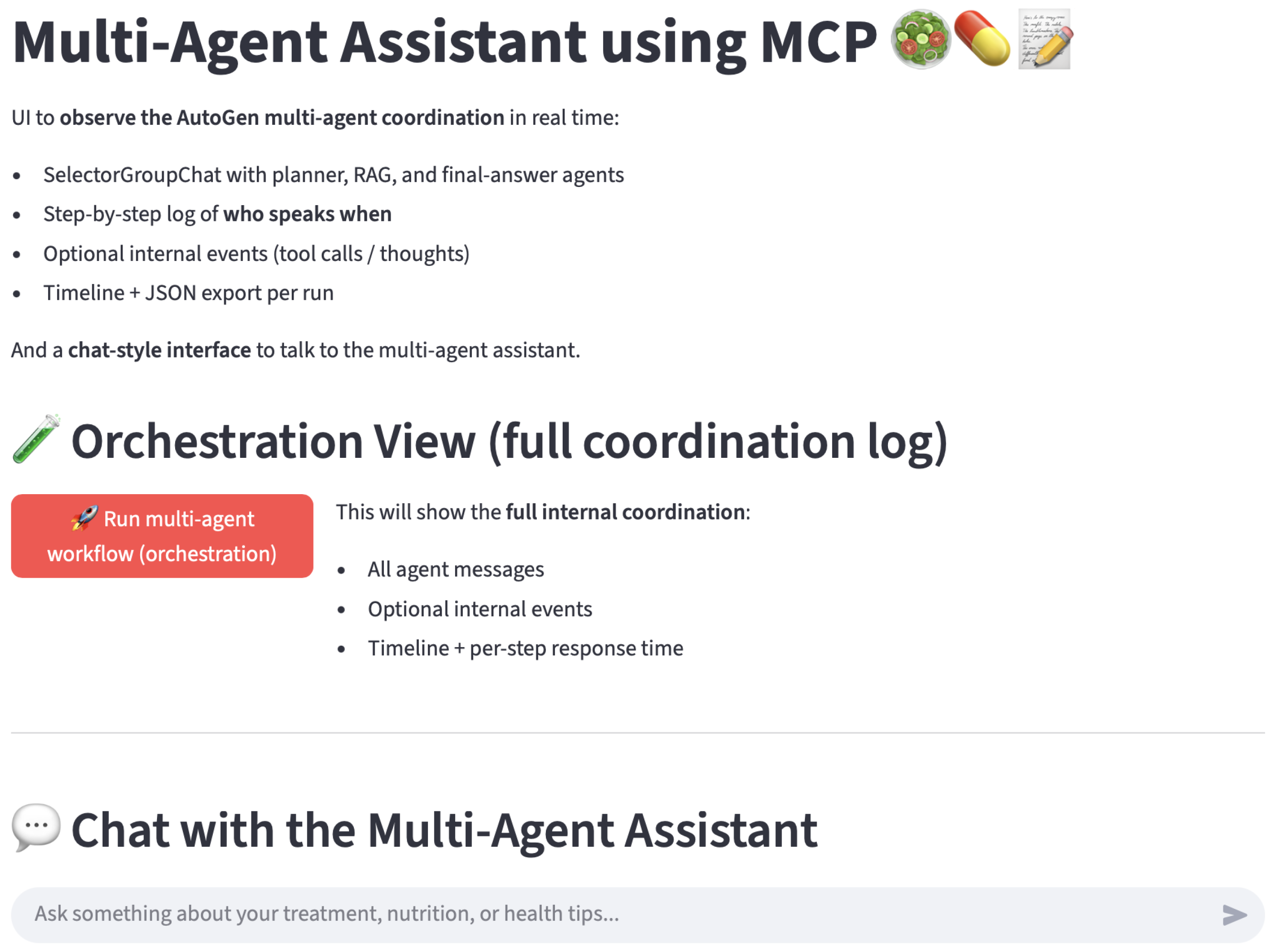 - Combined Nutrition and Pharmacological Analysis: In this advanced scenario, the MAS integrates data from both the Nutrition RAG Agent and the Medicine RAG Agent simultaneously. This allows the system to identify potential drug-nutrient interactions (e.g., verifying if a prescribed diet is safe given the user’s current medication) and provide comprehensive safety warnings that neither agent could generate in isolation.