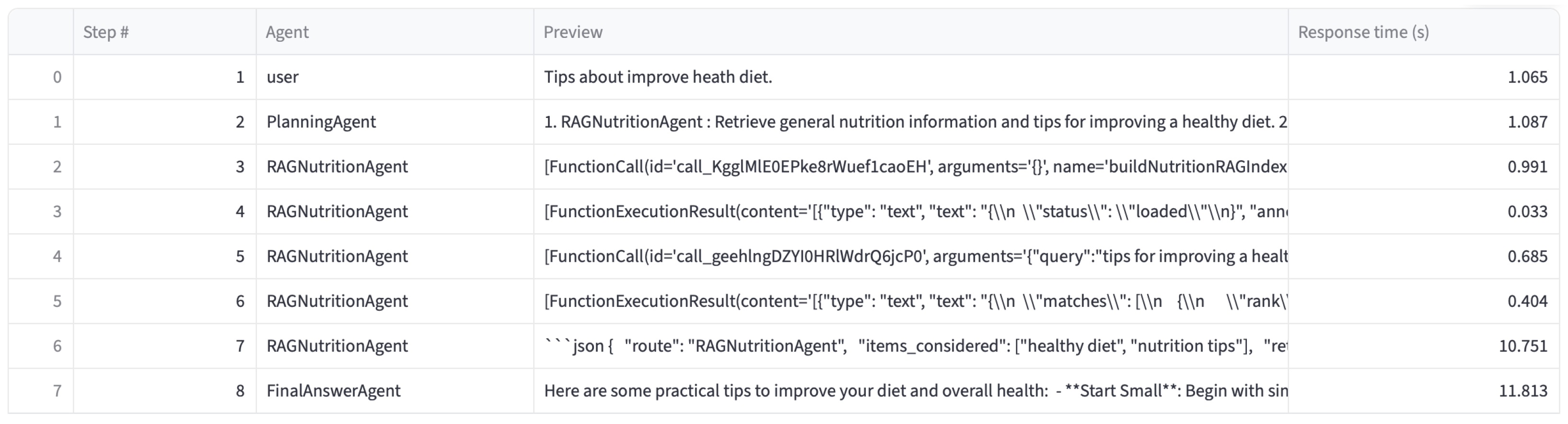 | Nutrition Agent | 0.75 | 0.98 | 0.49 | 31.20 |