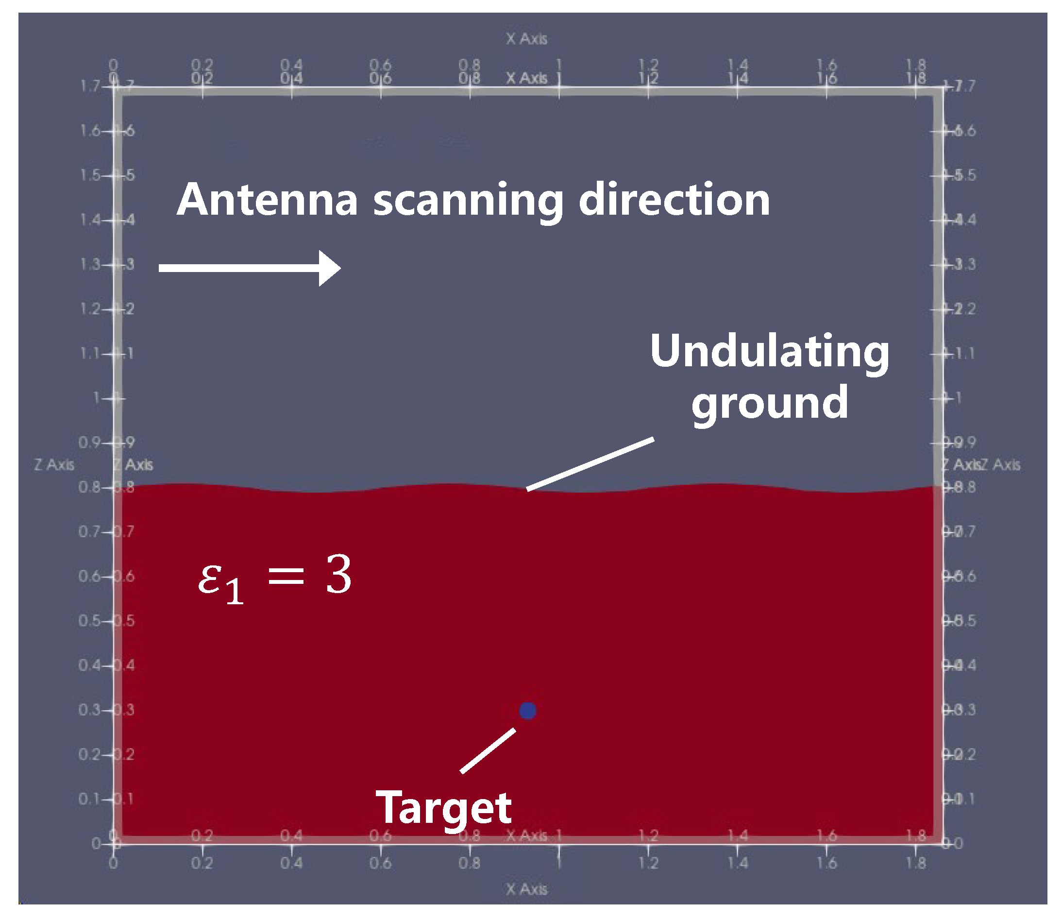 h variation curve relationship under different target depths and dielectric constants of various media. This section will simulate a set of target parameters commonly encountered in practical radar detection. We also investigate the imaging effects of configurations A and B at three different heights. A detailed introduction follows below.