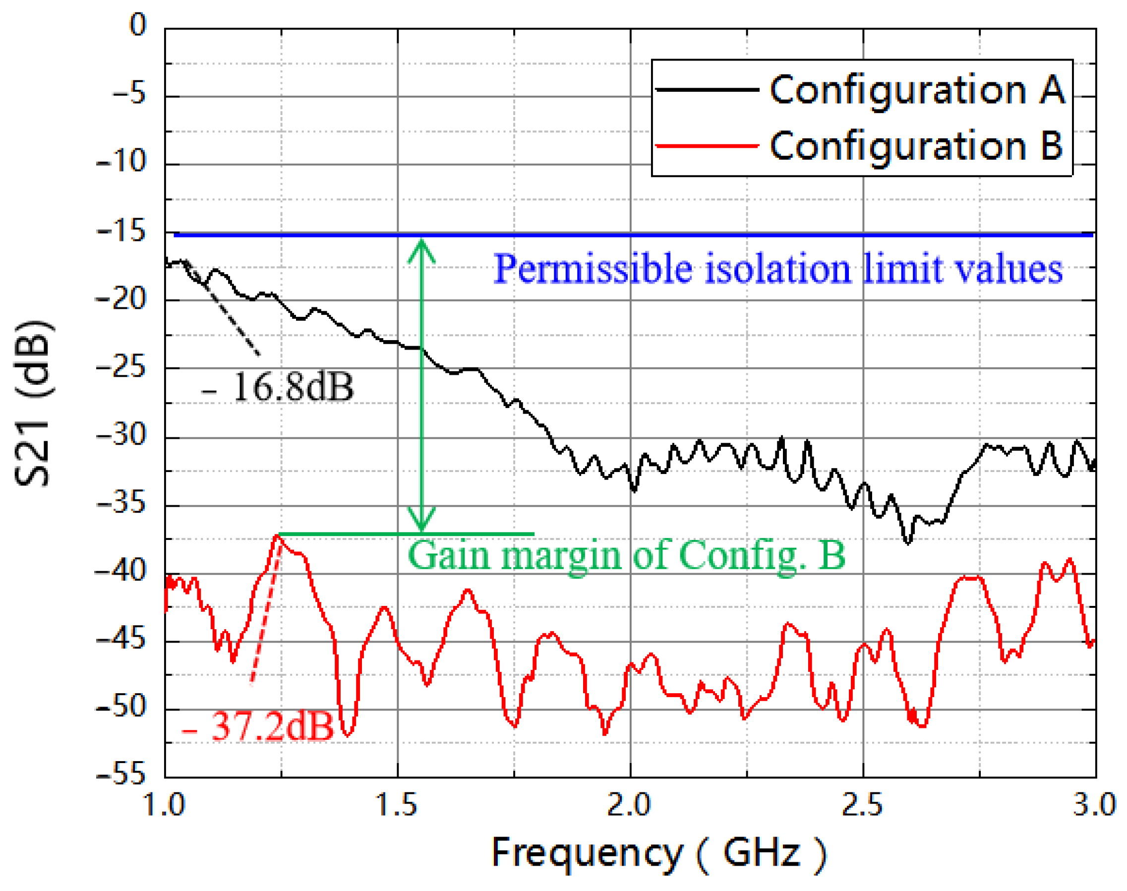 Table 2. The results indicate that Config. B can achieve a better level of isolation. Therefore, the gain at the receiving end allows for further improvement, and this result will provide guidance for subsequent experiments.