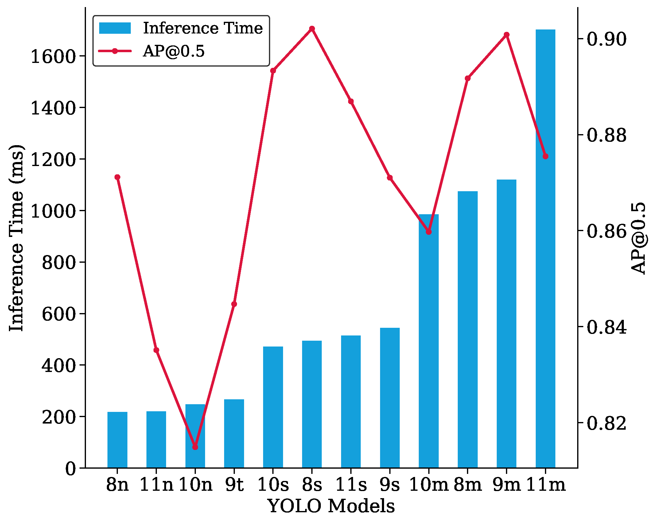 Ultralytics maintains the YOLO family of models and provides open-source implementations of the versions they primarily developed, such as YOLOv8 and YOLOv11. In practice, YOLO models present a tradeoff between model size and reliability. Although they are widely applicable across various computer vision tasks, our study focuses specifically on their object detection capabilities. To capture the balance between performance and computational efficiency, we selected the “n”, “s”, and “m” variants of each model. Among these, YOLOv8m is the largest, with 25.84 million parameters, while YOLOv9t is the smallest, with only 1.94 million parameters (see