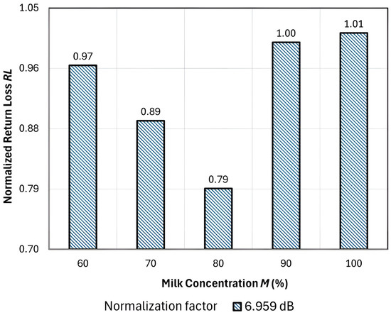 The normalized return loss (RL) at milk concentration M = 60% to 100%.