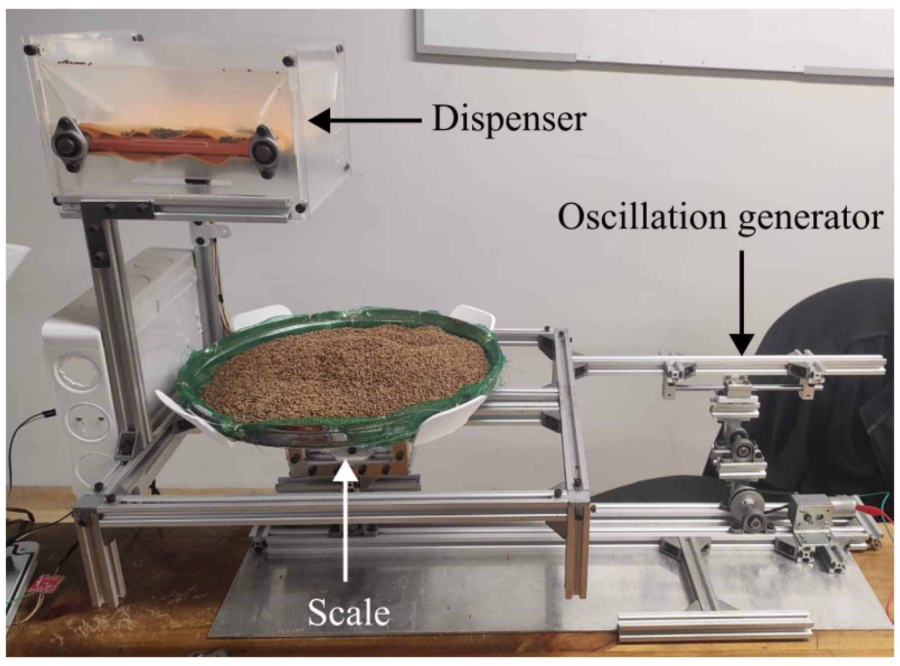 The experimental setup combined the feeder, the weighing platform and the oscillation-generation mechanism into a single integrated system. As shown in