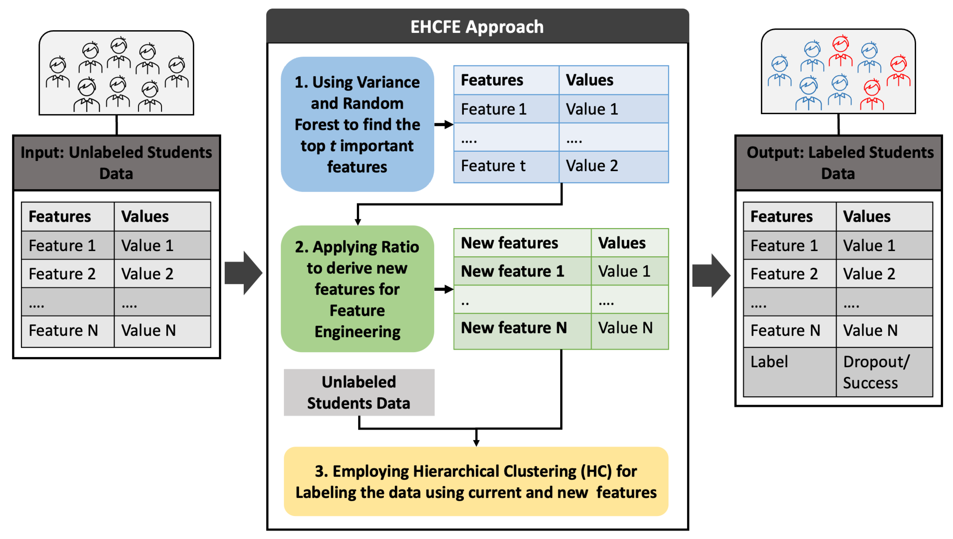 - The EHCFE approach proposed will automate labeling of students’ performance to facilitate performance and dropout prediction;