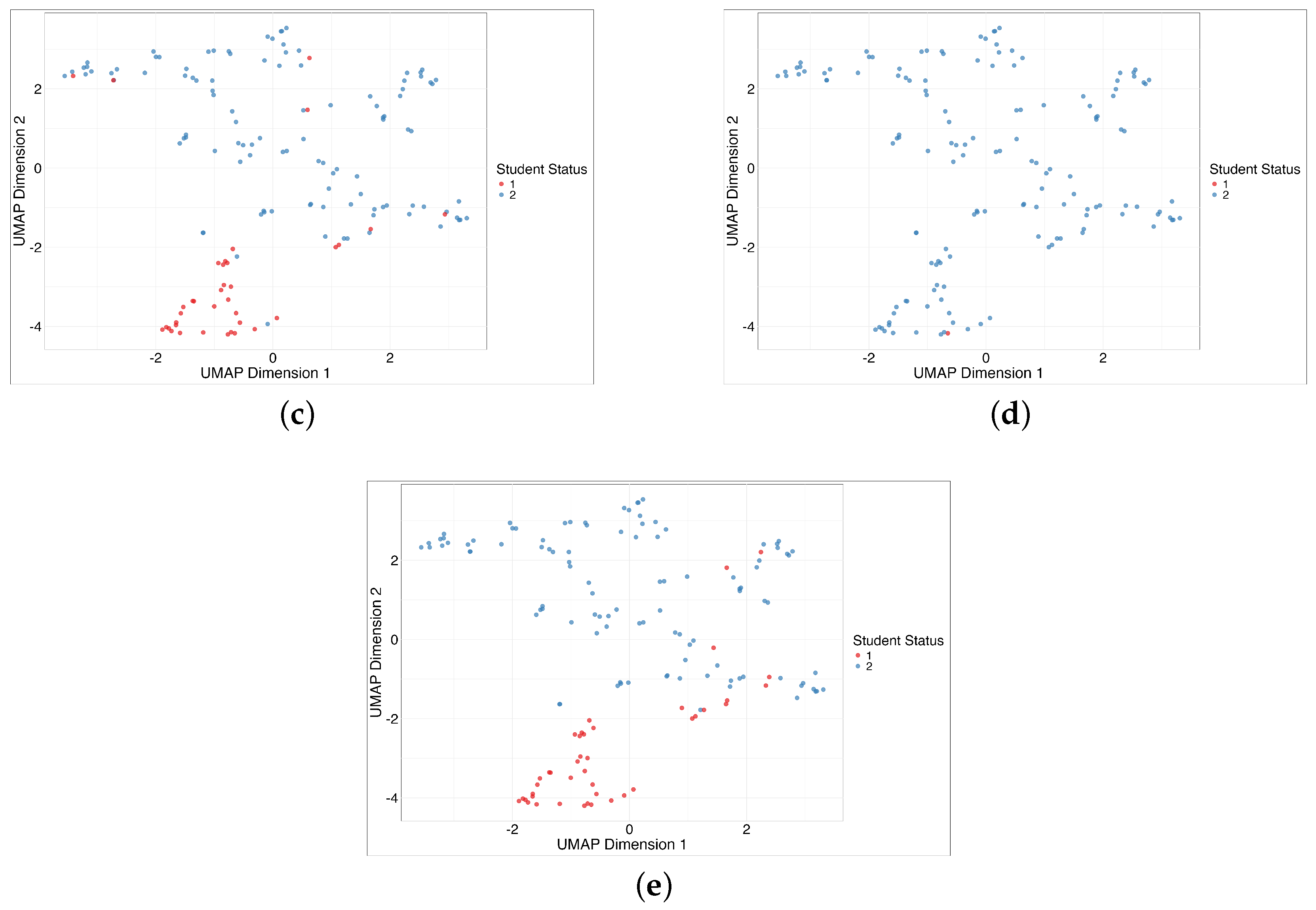 - Kim, S.; Choi, E.; Jun, Y.K.; Lee, S. Student Dropout Prediction for University with High Precision and Recall. Appl. Sci. 2023, 13, 6275. [Google Scholar] [CrossRef]