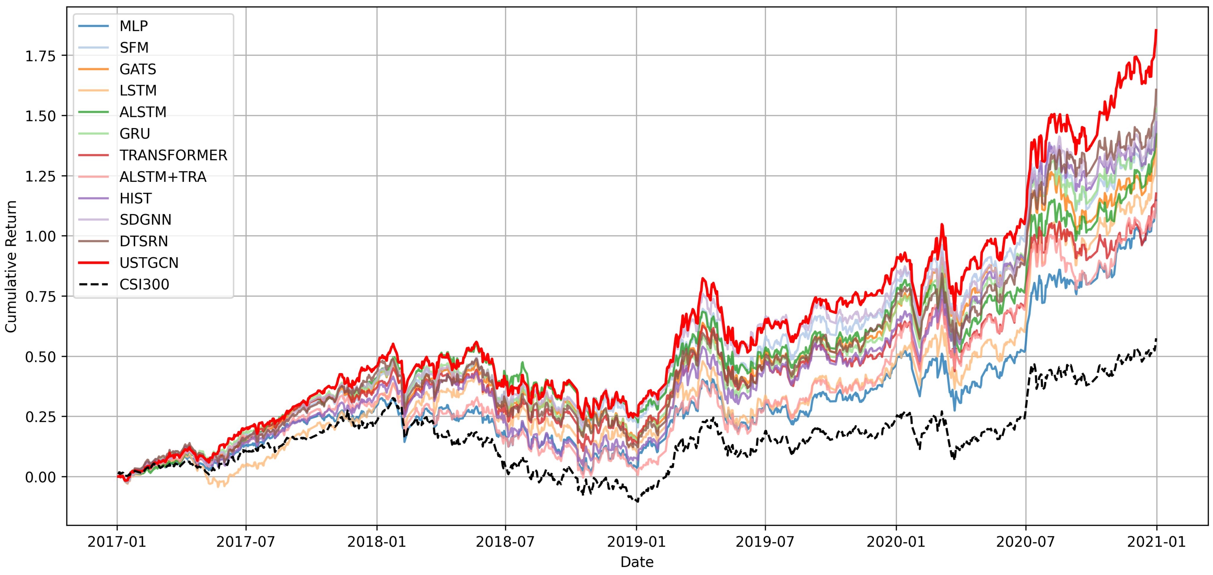 | CSI100 | USTGCN (Default) | ALSTM | GRU | 0.141 | 0.137 |