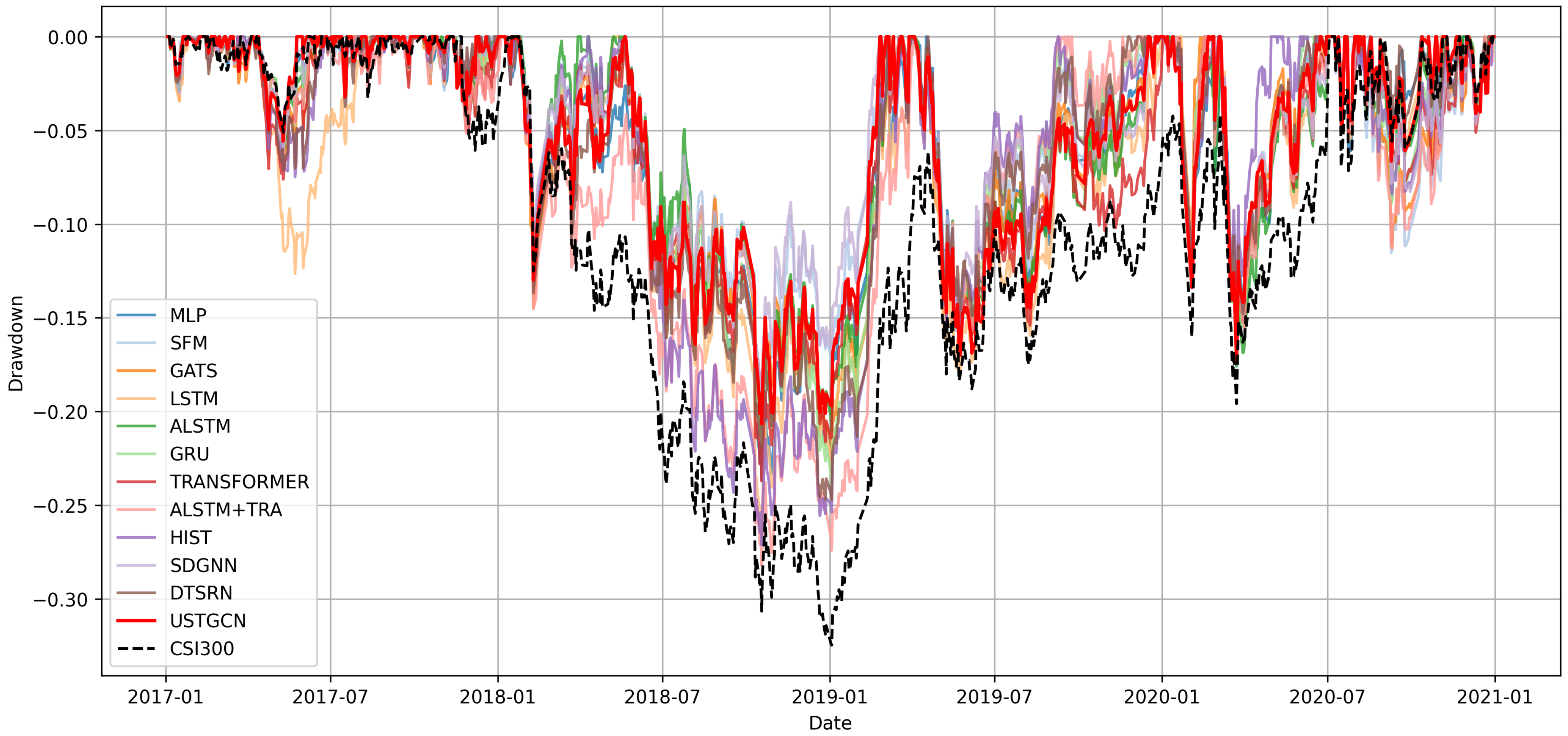 | CSI300 | USTGCN (Default) | ALSTM | GRU | 0.154 | 0.148 |