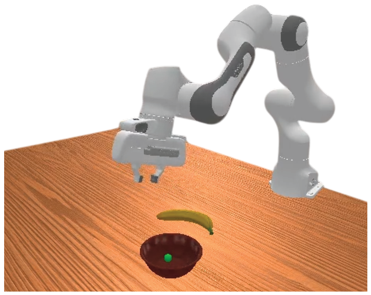 | Objects | Banana, target location, and a bowl |