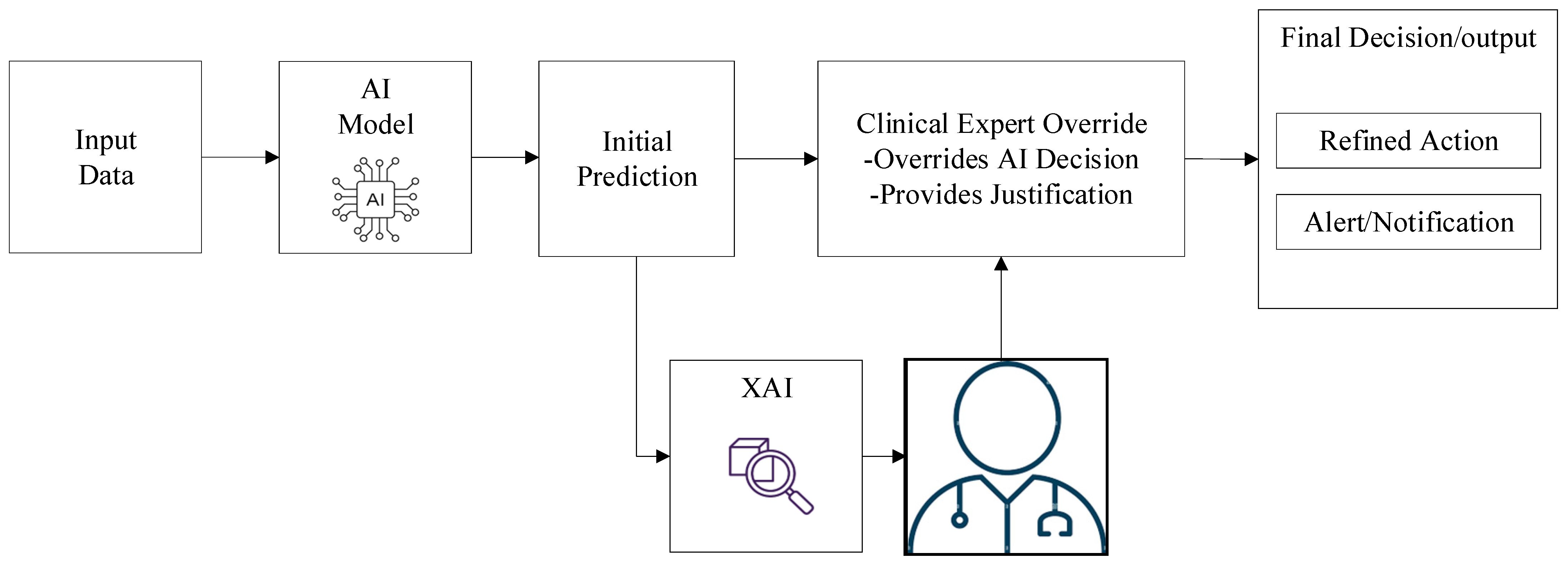 - Selective intervention mechanisms: HITL interactions should be triggered primarily for low-confidence predictions or high-risk decisions, reducing unnecessary clinician interruptions.
