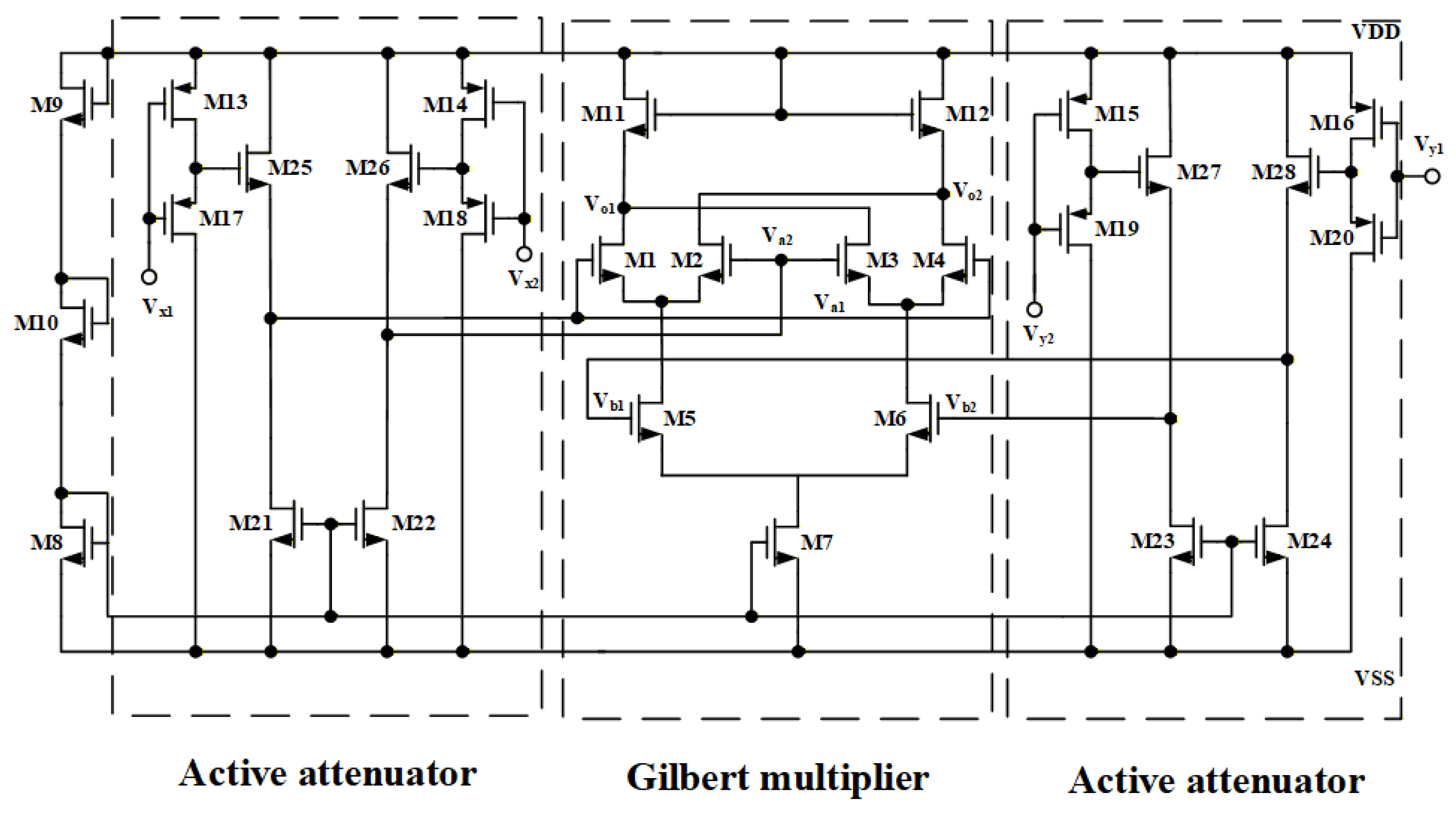 - Popa, C. Improved accuracy current-mode multiplier circuits with applications in analog signal processing. IEEE Trans. Very Large Scale Integr. (VLSI) Syst. 2014, 22, 443–447. [Google Scholar] [CrossRef]