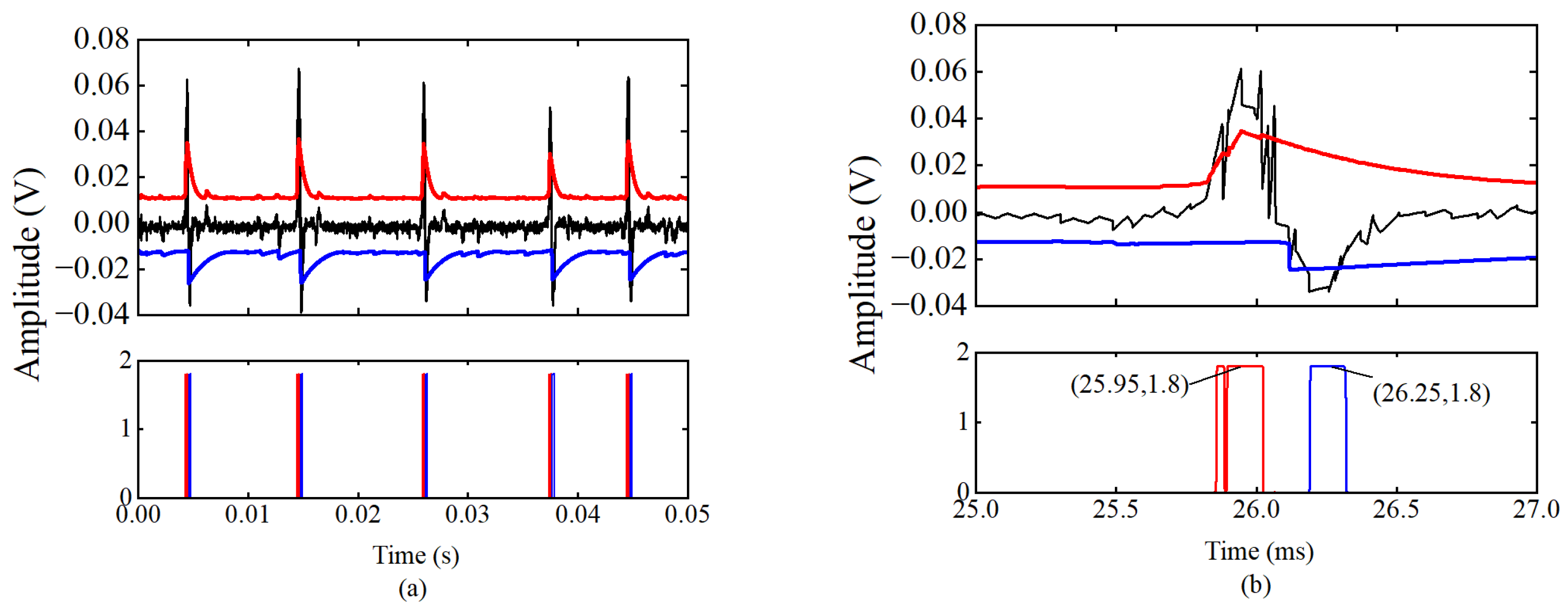- Guo, X.; Shaeri, M.; Shoaran, M. An accurate and hardware-efficient dual spike detector for implantable neural interfaces. In Proceedings of the IEEE Biomedical Circuits and Systems Conference (BioCAS), Taipei, Taiwan, 13–15 October 2022; pp. 60–64. [Google Scholar] [CrossRef]