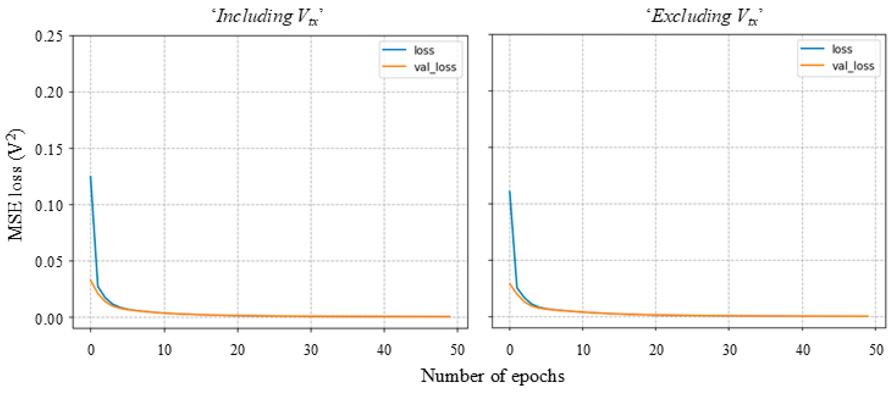 It is evident from the condition ‘Excluding Vtx’ that the NN models could capture the underlying relationships between inputs and outputs even without the insights from transformer voltage. However, if the actual transformer voltage (with variance) was available, the NN models could have performed even better, as it would have provided more insights into the underlying relationships rather than the constant value assumed in this study. Since a constant voltage of 1.05 pu was assumed at the distribution transformer LV bus under the condition ‘Including Vtx’, applying MinMaxScaler normalisation resulted in this constant voltage being transformed to zero across all time instances. It is vital not to be misled by these results when deciding feature importance and be aware that this feature (Vtx) was constant by design and could have provided deeper insights if the actual variance was incorporated. Nevertheless, even in the absence of this feature, NN models could provide sufficient accuracy, whereas with the LR approach, this feature was essential either as an approximate constant value, as adopted in this study, or as actual measurements obtained from a transformer monitor when available.