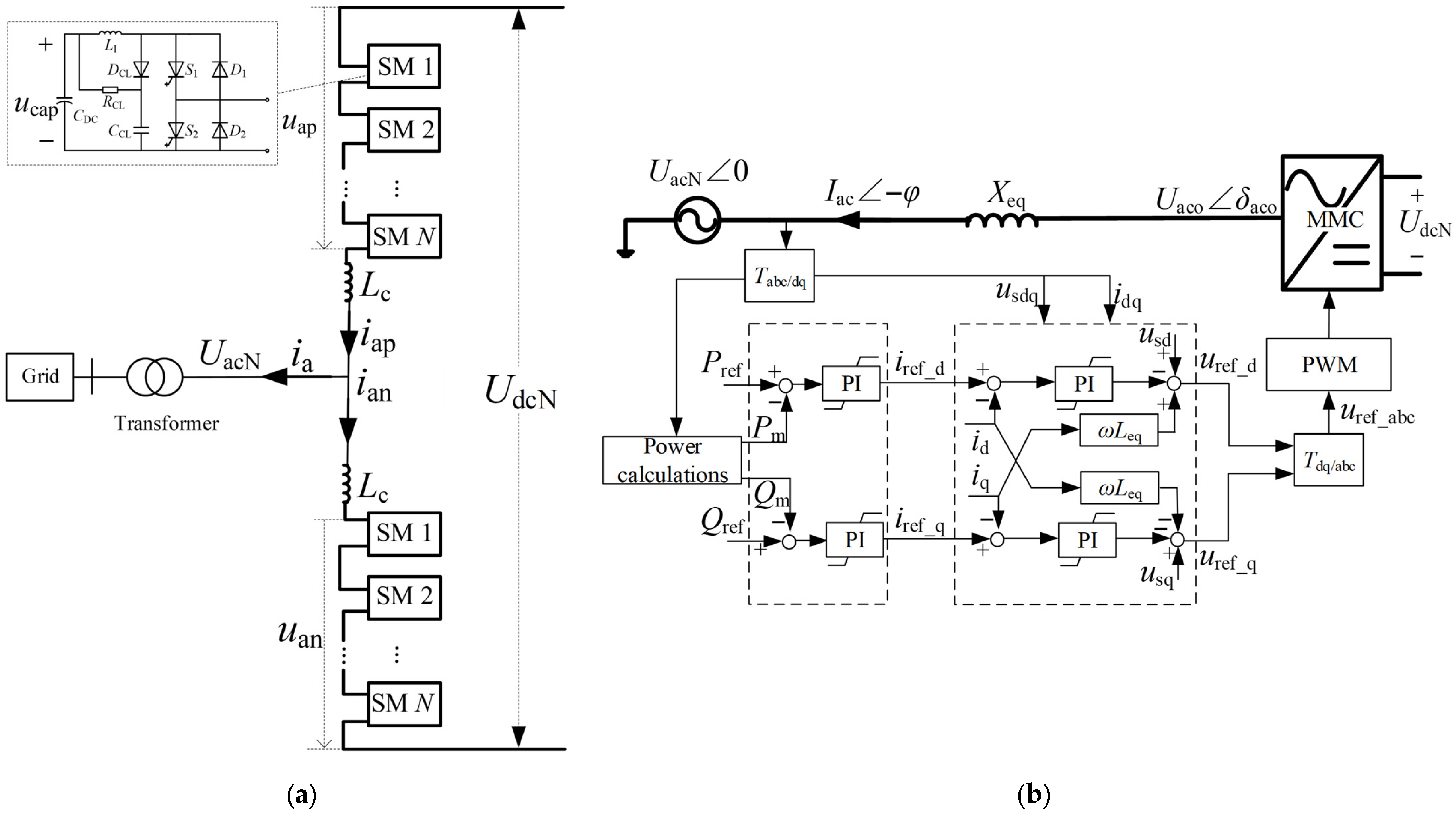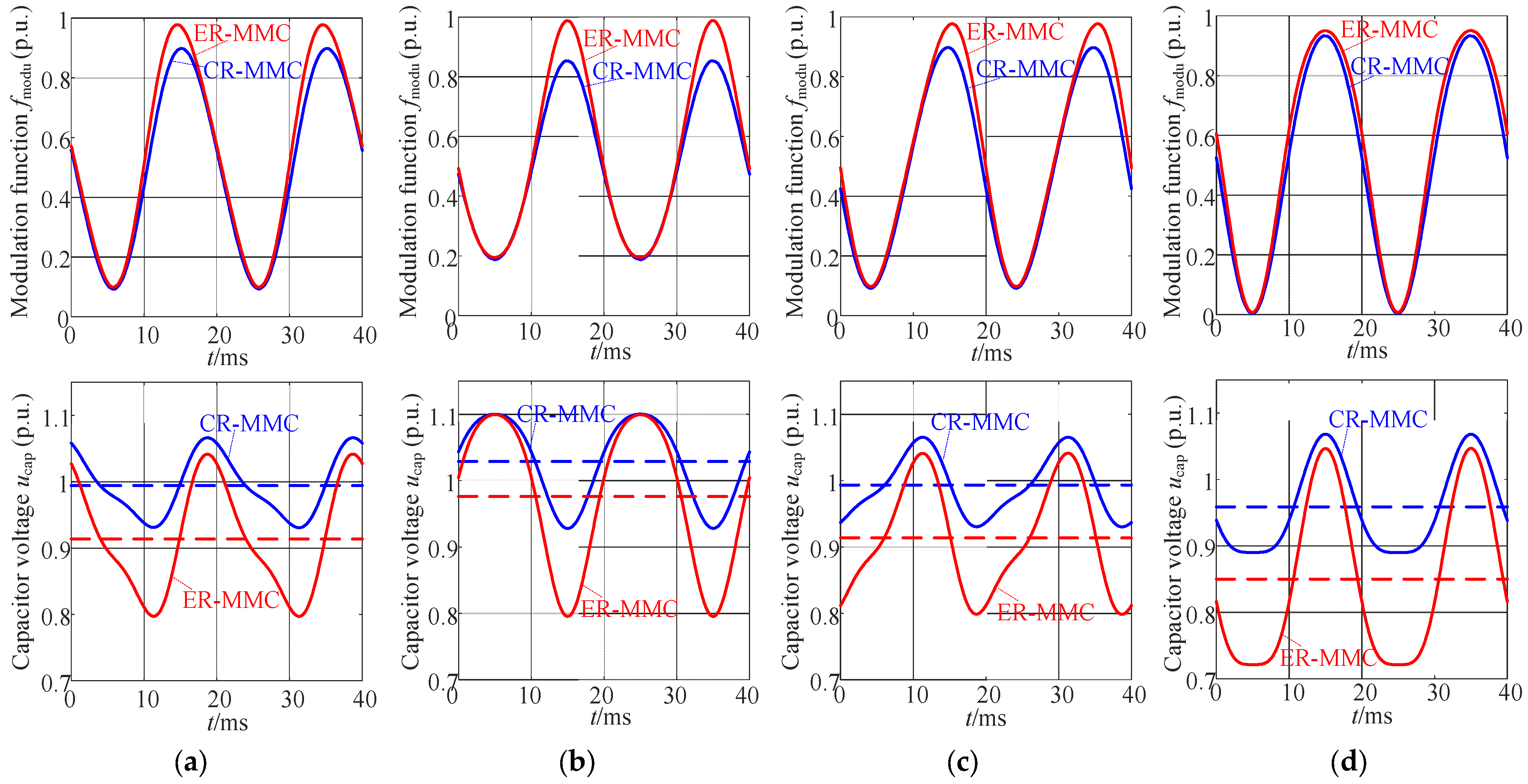 - Zhou, Y.; Song, Q.; Zhang, N.; Gao, S.; Meng, J. Unified analysis model for expanding linear modulation region of MMC and its influence on arm power fluctuation. High Volt. Eng. 2021, 47, 4451–4461. [Google Scholar] [CrossRef]