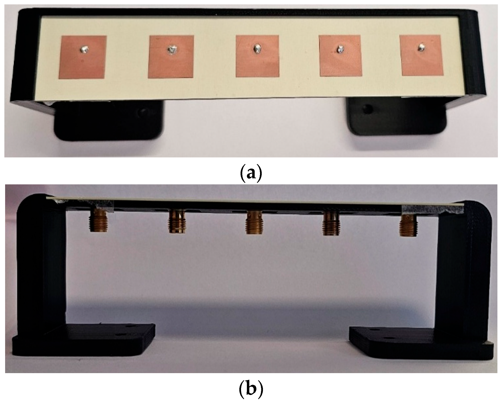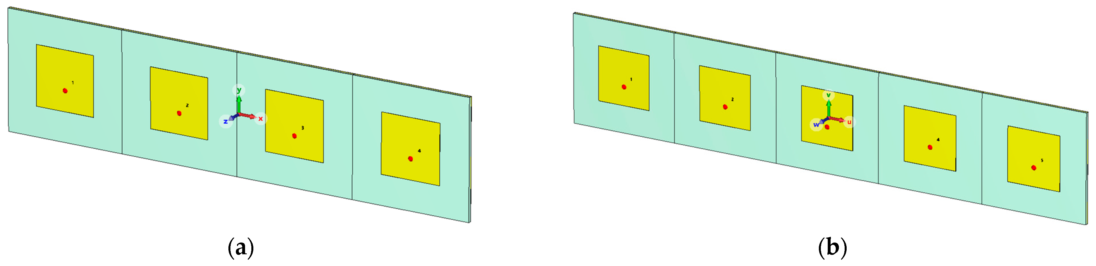 Figure 4a), all elements were tilted relative to the center of the array, whereas in the five-element configuration (