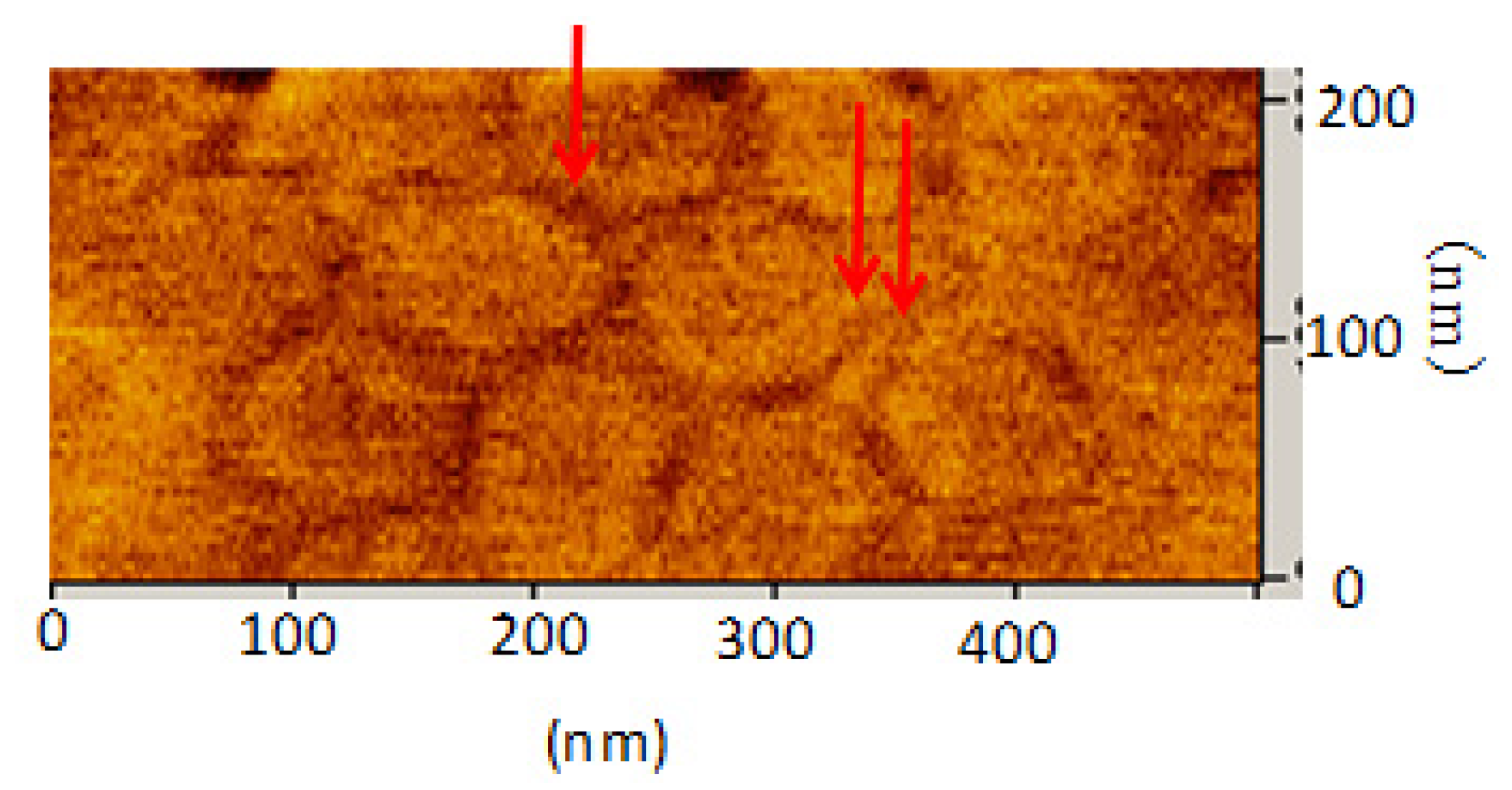 - Niimi, Y.; Matsui, T.; Kambara, H.; Tagami, K.; Tsukada, M.; Fukuyama, H. Scanning tunneling microscopy and spectroscopy of the electronic local density of states of graphite surfaces near monoatomic step edges. Phys. Rev. B 2006, 73, 085421. [Google Scholar] [CrossRef]