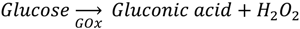 The detection of glucose using GOx has long been used as a model detection system [18] and has been included in biosensor studies going back to the 1960s [17]. This extensive use can be attributed to three reasons. Firstly, the reaction with glucose, which is catalysed by glucose oxidase, has been very clearly defined and well understood for many years, making it ideal for use in situations with other unknown factors, such as newly-developed sensing platforms. Indeed, the high stability and specificity of GOx has led to it being referred to as “the ideal enzyme” [19]. Secondly, H2O2, a by-product of the glucose-GOx reaction, can electrochemically react with (oxidize) conjugated polymers, causing a change in conductivity [20], as well as an electrochemical break down when exposed to an electrical potential into by-products, including charge carriers, making for two potential sources of generating an electrical signal (see Equations (1) and (2)). Thirdly, and crucially, the sensing of glucose has many extremely useful medical applications; in particular, for the monitoring of blood-glucose levels in sufferers of diabetes.