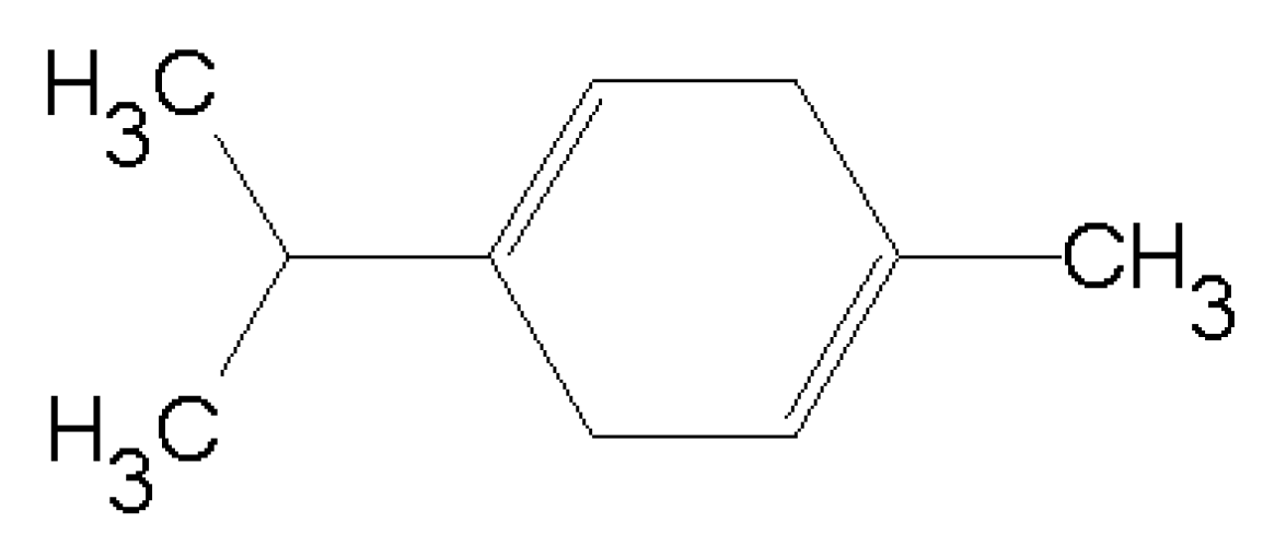 Chemical structure of 1-Isopropyl-4-methyl-1,4-cyclohexadiene (C10H16).