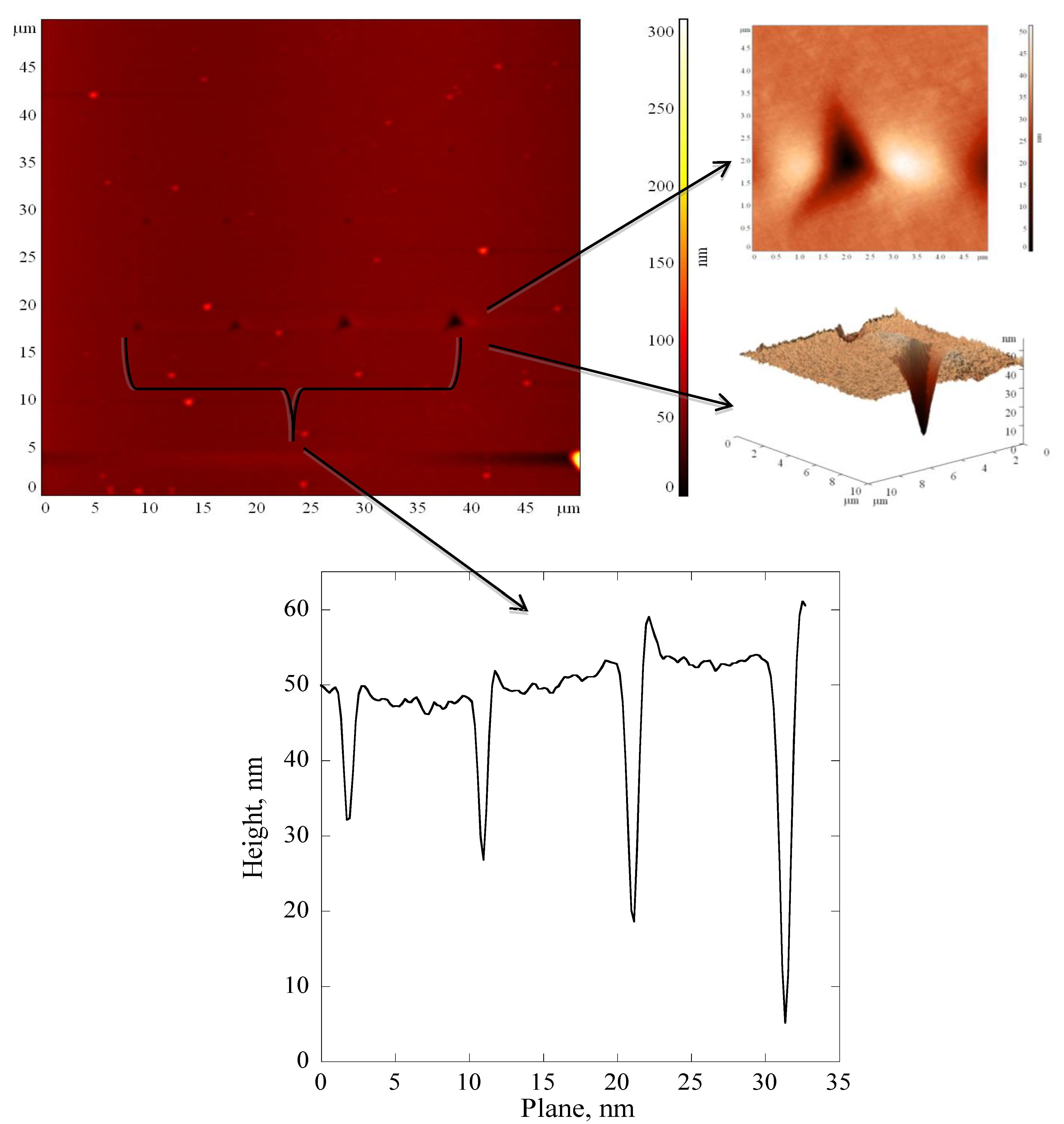 Typical AFM image of plastic impressions remaining in pp–GT sample fabricated at 75 W after indentation under different load conditions.