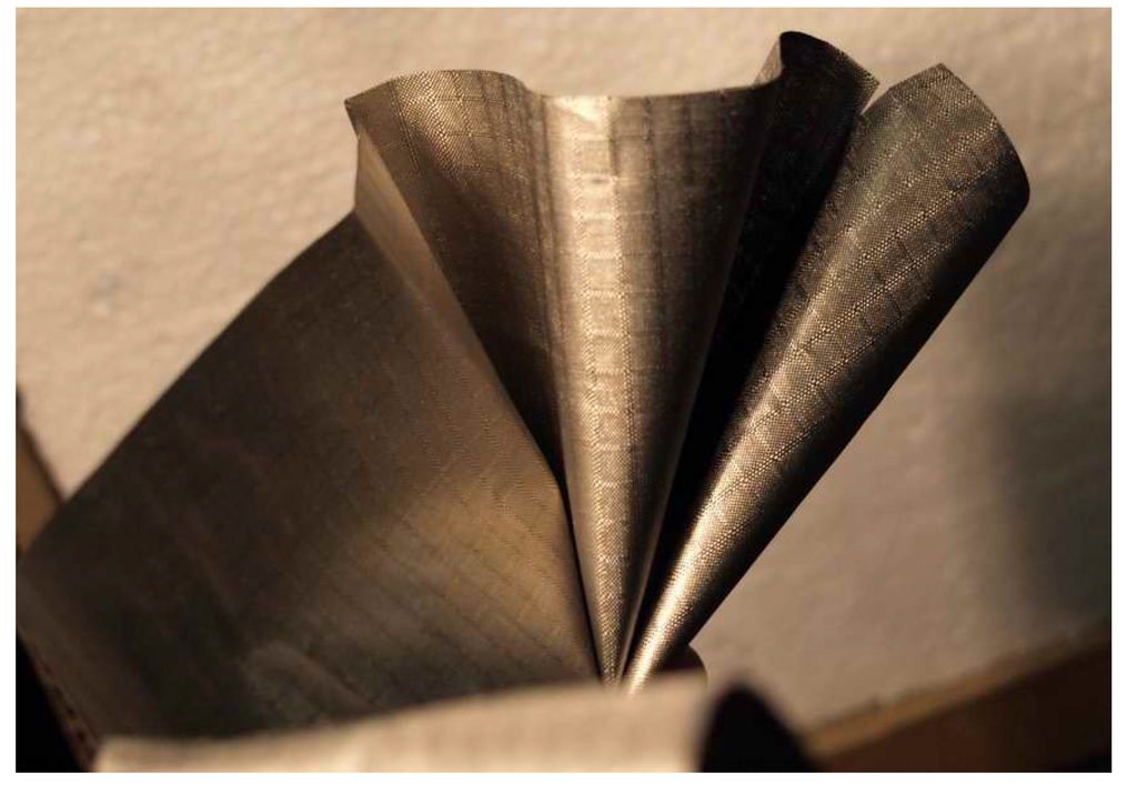 This technique requires more time to construct a single antenna but may allow an element of automation for mass production. This can result in a more tolerant and flexible antenna structure compared to using copper tape. We will include woven metallic cloths, in this section. An example of this is Nora Dell which is a textile coated with nickel and silver to from a highly conducting flexible sheet (Figure 4).