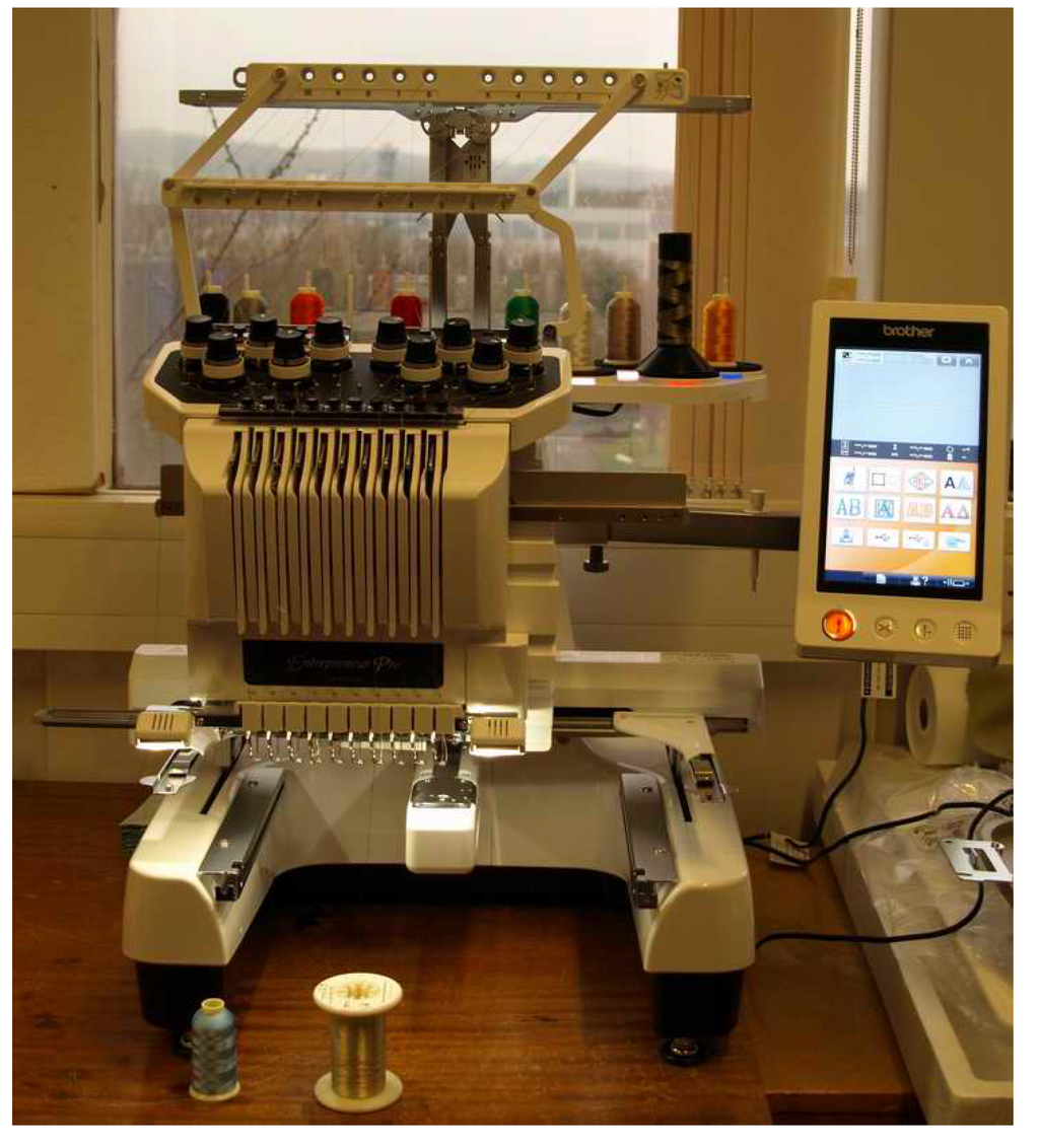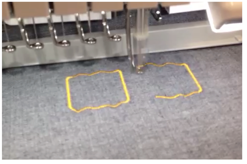 The traditional embroidery process creates aesthetic shapes using colored threads on a base textile material. By using specialist conducting threads, antennas can be embroidered onto the base textile. Although the basic principles are the same, the technology has advanced to enable a digital image to be directly embroidered using a computer aided embroidery machine (Figure 5). The conducting threads must exhibit suitable flexibility and strength so as not to be broken by the high tensions required in the embroidery machine.