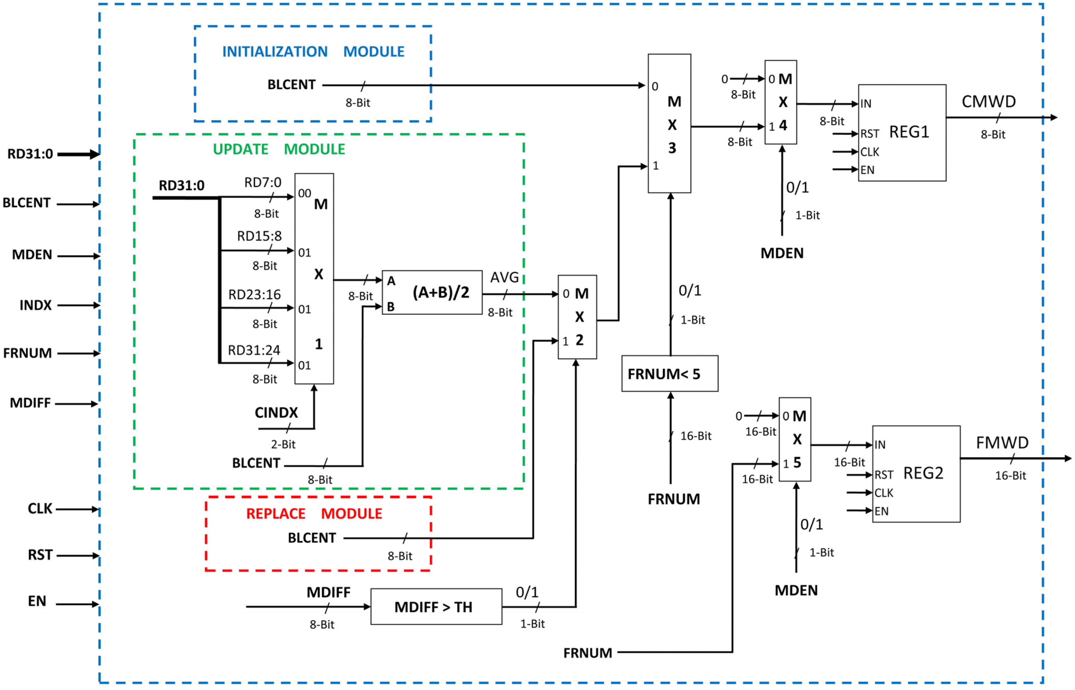 Proposed VLSI architecture of Initialization, Update, and Replace Module.