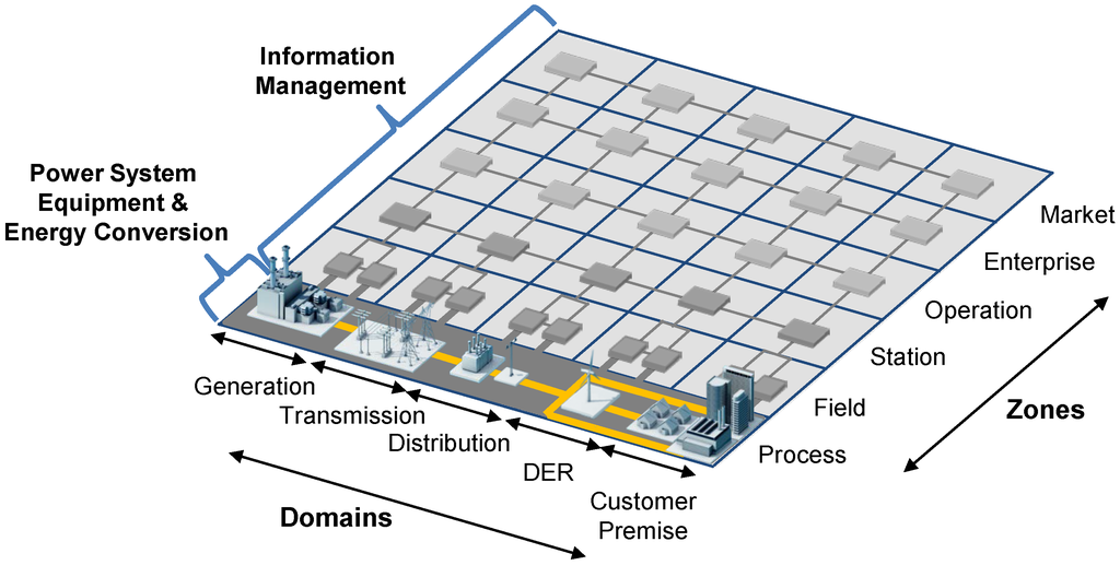 Smart Grid plane spanned by domains and hierarchical zones, reproduced with permission from [20]. Copyright 2012, European Committee for Standardization (CEN).