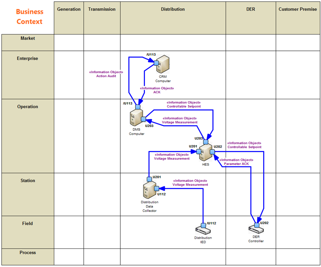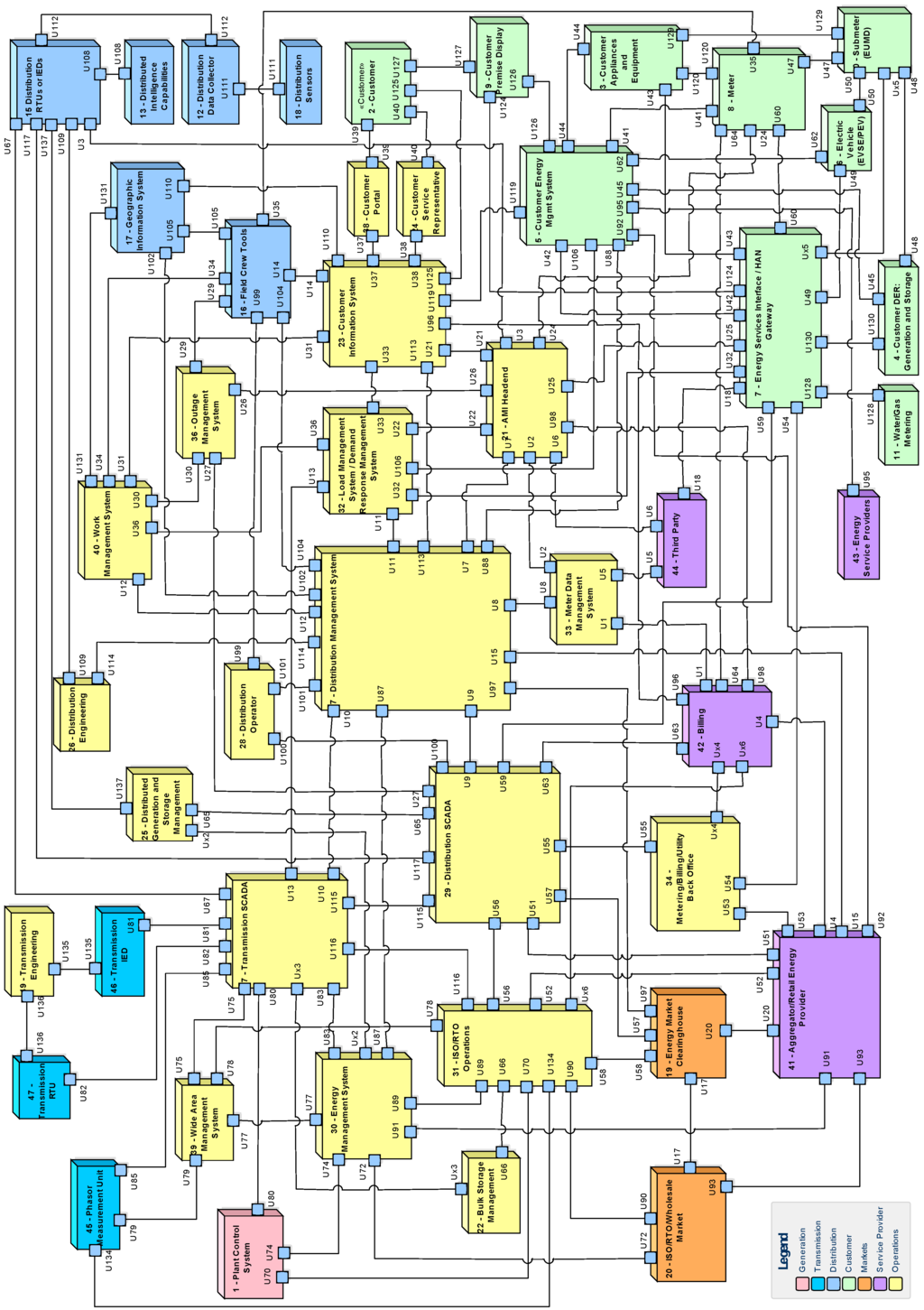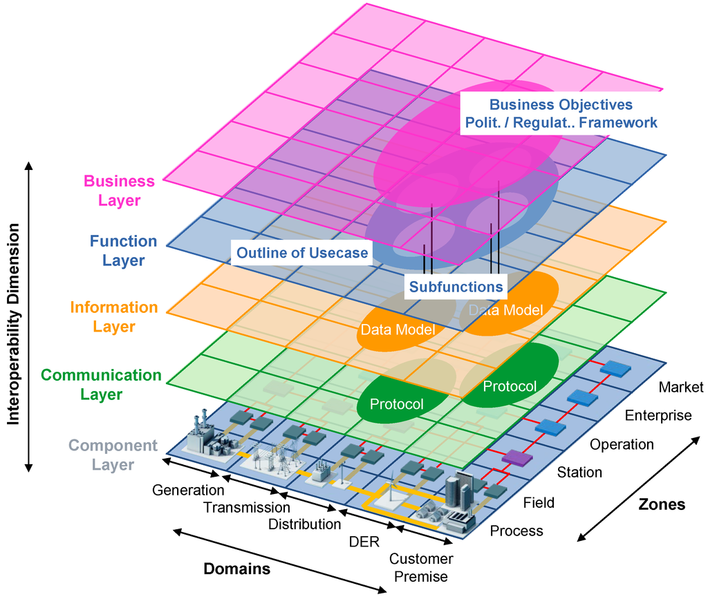 - Enterprise: Includes commercial and organizational processes, services and infrastructures for enterprises (utilities, service providers, energy traders, etc.), e.g., asset management, logistics, work force management, staff training, customer relation management, billing and procurement, etc.