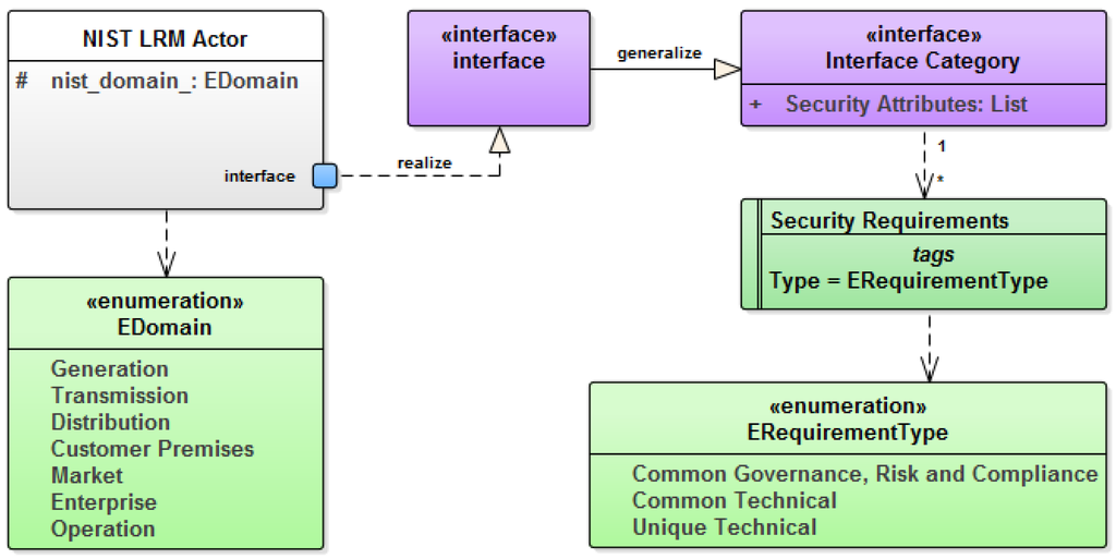 Finally, all of the interfaces from the NIST LRM were assigned to one or more of the specified Interface Categories. Thus, by following the path Actor → Interface → Interface Category → Security Requirements the particular Security Requirements for a certain actor can be obtained. For a better understanding, the conceptual model of the NIST LRM is depicted in Figure 5.