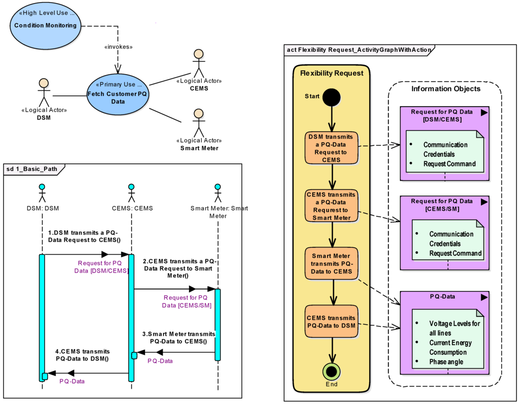As the field of Smart Grid deeply relies on interactions, the IntelliGrid EPRI domain adopted this concept and a formal glossary and categorization for requirements of domain-specific utility communication solutions has been provided [43]. On basis of feedback from utility experiences the IEC 62559-2 Use Case Template has been proposed [44,45]. This template gives a framework for a formal description of particular Smart Grid related Use Cases. By now, this template finds broad acceptance within the community. Also, adequate tool support has been developed. A very well-known example is the DKE hosted Use Case Management Repository (UCMR) that has been used for common development and information sharing during the work conducted among the European Standardization Mandate M/490 [19].