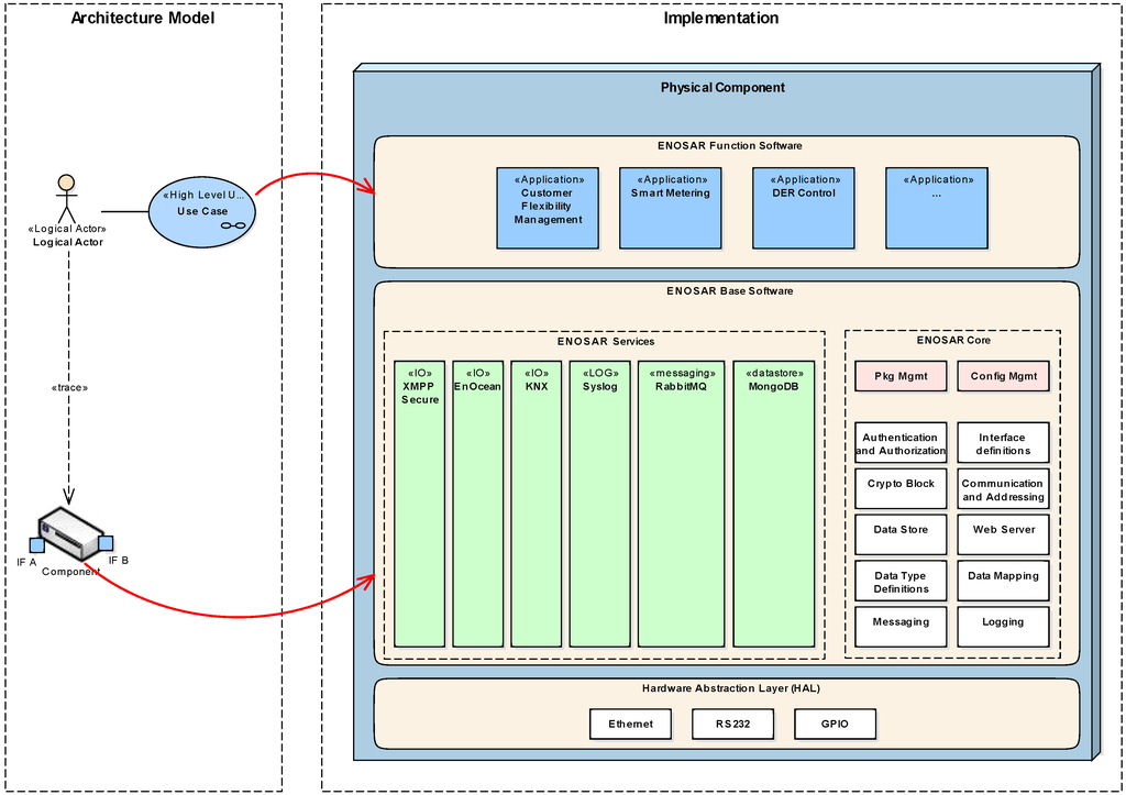 The Domain Specific Architecture Framework building block delivers a framework for a consistent development over all development phases as mentioned before. To maintain consistency, the framework is suited to deliver a model that is separated in a functional model and an architecture model with explicit model transformations in between. Moreover, to raise acceptance of all involved stakeholders, this model should be created on basis of a Domain Specific Language (DSL). The presented approach introduces such a DSL that is specified on basis of the SGAM concepts as discussed in Section 2. The availability of such a well-defined modeling language enables the integration of best practice solutions or a model based assessment of particular architectural solutions. For example, different concepts can be evaluated in respect to costs, complexity or security weak points.