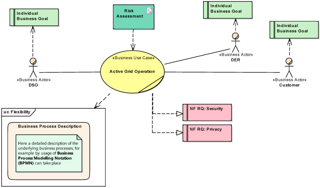 The System Analysis Phase aims at defining the needed functionality for a particular system. Thus, it yields a Functional Model. To derive the desired functionality, in a first step (Business Analysis and Risk Assessment) the underlying business case is investigated which clarifies the motivation for a system. In addition, during this step eventually occurring regulatory constraints can be considered. Another important step during the phase is the execution of a Risk Assessment. Detailed considerations on such Risk Assessments for Smart Grids can be found for example in [21]. The way of pursuing such a Risk Assessment strongly relies on the system to be built and thus, no more considerations on this are given in this paper. However, it is very important to perform such an assessment in this very early stage in order to identify particular architectural drivers for further considerations.