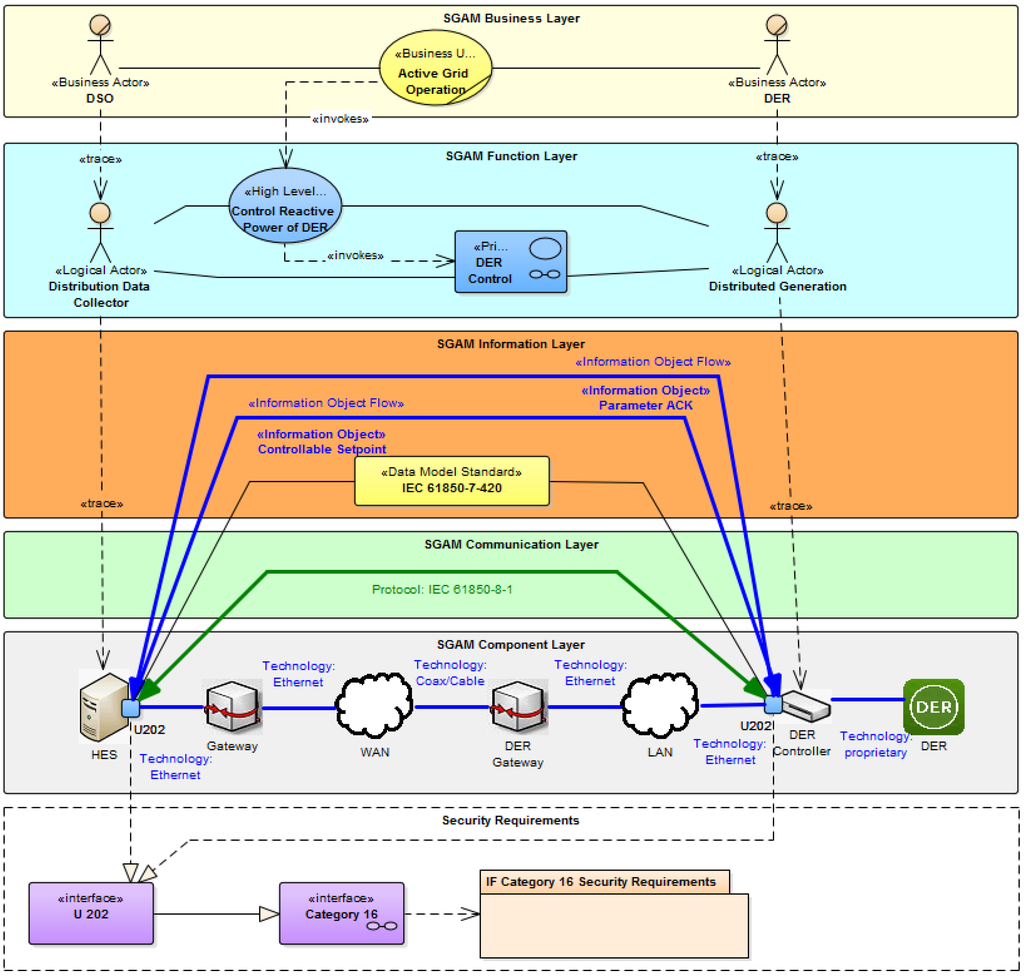 As it can be seen, a complete picture can be derived that describes all individual aspects mentioned by the SGAM. In addition, as the physical elements are derived from the NIST LRM they include the related interfaces which can be traced to the concerning security requirements via their interface categories.
