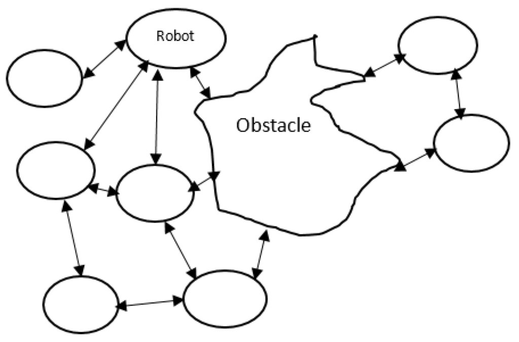 In the current implementation of virtual force, obstacles are treated as an object that will exert a repulsive force; however, dealing with the size of obstacles and how obstacles will be detected is worth further investigation. For instance, a robot can detect an obstacle using a range sensors/camera as in Figure 13. Then, the robot starts to make a conception about the shape of the obstacle. Based on this conception, the repulsive force should be exerted. Additionally, we would need to look at how to deal with regular and irregular obstacles and their effects on the stabilization of virtual force-based deployment.