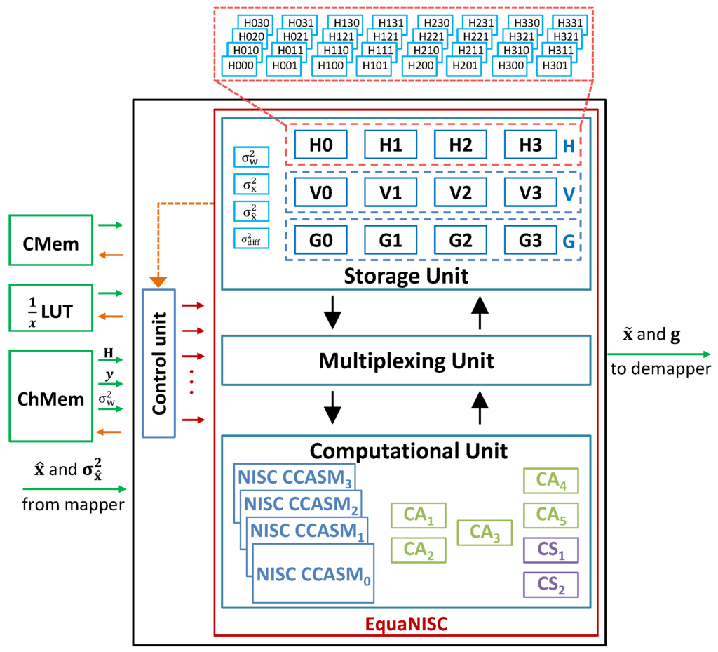 EquaNISC is the principal module of the proposed architecture dedicated for MIMO MMSE linear turbo equalization. It is hierarchically composed of three units: