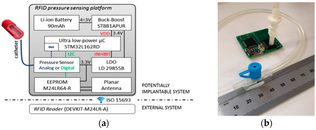 - Caldara, M.; Nodari, B.; Re, V. Development of a potentially implantable pressure sensing platform with RFID interface. In Proceedings of the 2013 IEEE Sensors, Baltimore, MD, USA, 3–6 November 2013.