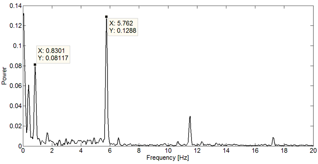Fast Fourier transform spectrum of the signal depicted in Figure 8.
