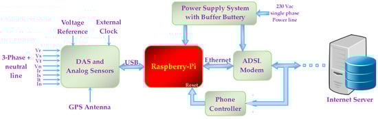 The hardware and software characteristics of the Raspberry-Pi Model B (CPU: 700 MHz; RAM: 256 MB; FLASH/HD: 4 GB; O. S.: Linux; USB and Ethernet connections) were sufficient to control the acquisition card and allowed data transmission to the remote server. The algorithms for the PQ parameter evaluation that were translated for the Raspberry ran easily. Being a fanless device, it preserves the advantages in terms of reliability warranted by the ADVANTECH PC. These preliminary checks certified the possibility of use, thus realizing the substitution of the PC with the Raspberry.