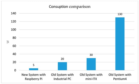 The power consumption of the whole probe was experimentally measured and was about 5 W, while the device with the ADVANTECH PC was 20 W (saving up to 75%). Figure 9 shows the power consumption comparison between the new instrument and the previous versions.