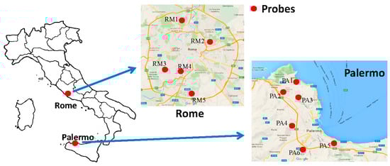 Geographical distribution of the probes in Italy: five in Rome and six in Palermo.