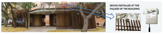 In this pilot test, two acoustic devices have been deployed. One of them was deployed inside a multi-purpose room of a neighbourhood and the other outside the building, as it can be seen in Figure 9.