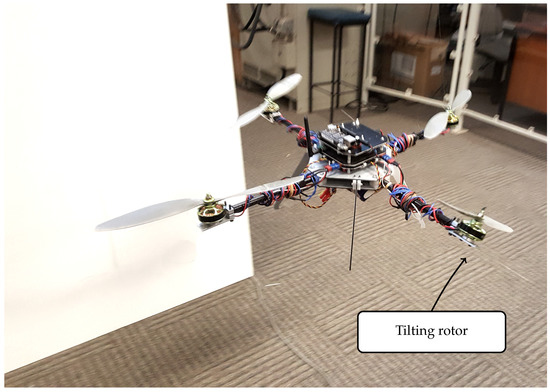 - Ryll, M.; Bülthoff, H.H.; Giordano, P.R. Modelling and control of a quadrotor UAV with tilting propellers. In Proceedings of the 2012 IEEE International Conference on Robotics and Automation (ICRA), St. Paul, MN, USA, 14–18 May 2012; pp. 4606–4613.