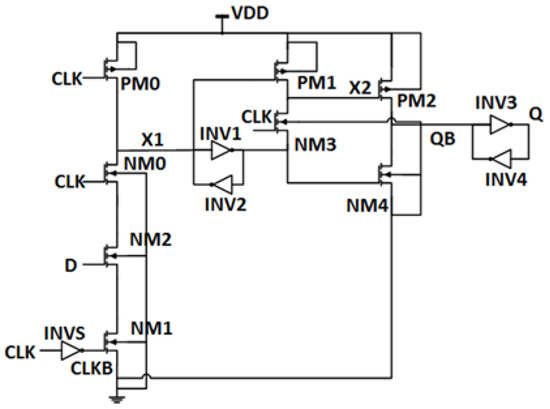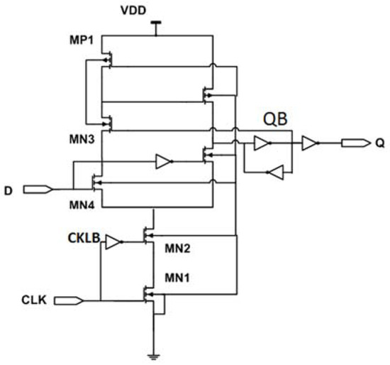 - Kawaguchi, H.; Sakurai, T. A reduced clock-swing flip-flop (rcsff) for 63% power reduction. IEEE J. Solid State Circuits 1998, 33, 807–811. [Google Scholar] [CrossRef]