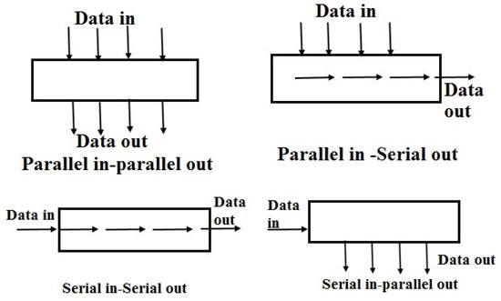 In the last decades, radio frequency identification (RFID) technology has turned out to be a discipline of predominant attention for wireless communication system. RFID technology integrates portable wireless devices in order to detect both the nature and the precise location of physical objects or persons [1,2]. The RIFD reader contributes to transmitting the information and energy into the RFID tag where the tag is responsible for providing feedback to the RFID reader for any kind of inquiry [3]. The fundamental concern of this system is to protect the data privacy of the consumer. With the advancement of modern technology, personal data privacy faces different kinds of threat. The privacy of a consumer can be stolen or scanned without approval or even learning. The medical information of patients can be revealed and anybody can be a victim of clandestine tracking by vendors [4,5]. In response to these issues, a lot of research has been done aimed at the prevention of unauthorized access to RFID tags. To improve the security system in active RFID tags most of them use a shift register for storing a key or data [6,7]. The shift register is integrated into a modulator/demodulator in cryptographic RFID tag. Figure 1 and Figure 2 describe the integration of a shift register in a cryptographic RFID tag precisely. The shift register is used in a modulator/demodulator to shift one bit at the rising edge of the clock in one shift action. The four-bit shift register loads data in it through the four-bit parallel input, and shifts it out through the serial output. Therefore, designing an efficient shift register has become a more demanding goal in current RFID security system.