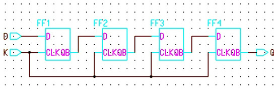 Schematic of the four-bit serial in –serial out (SISO) shift register.