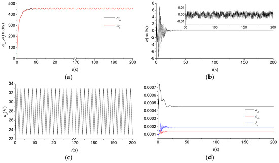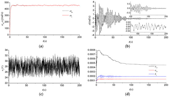 Figure 5a,b that the soft sensor can achieve good measurement performance within 25 s even without any a priori information about the behavior of the rotational speed system. The measurements of the soft sensor can then match approximately with the measurements generated by the high-resolution encoder, and the measurement error finally maintains within the range of 0.005 rad/s. As shown in