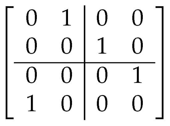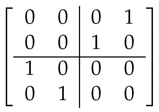 The auto-ambiguity function for the frequency-hopped radar is expressed in terms of coincidence matrices defined as follows. The auto-coincidence matrix of size is denoted as χ, and its elements are obtained from the number of the coincidences of the ones of the signal matrix between the original array and its translation in both coordinate directions [13]. Each entry of χ, denoted by , represents a shift of r units in the horizontal and s units in the vertical direction. For a shift towards the right, r is positive, while it is negative for a shift towards the left. Similarly, s is positive for a shift upward and negative for a shift downward. The entries of the auto-coincidence matrix χ satisfy the following conditions: (this is the autocorrelation), for when and , and if or if . For two such signals and , we define the cross-coincidence matrix ξ of size as the number of coincidences of ones between and a translated version of , shifted to the right or left by r and up or down by s. Ideally, we require for and to be as close to zero as possible in order to ensure orthogonality between and . Note that represents the cross-correlation between and .