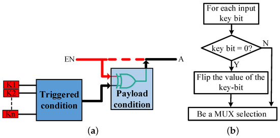 (a) Hardware logic unit (HLU) idea to protect the design. (b) Flip the key bit value.