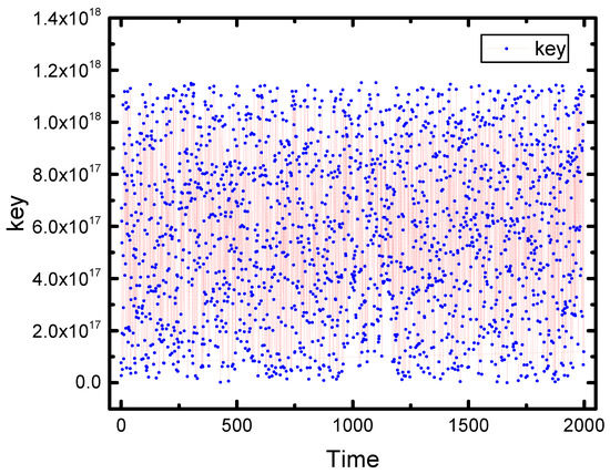 The selections of all MUXs must be provided with the right key bit values at any time for whatever the input patterns are to maximize the protection of the circuit. LFSR always provides the MUX selections with these values to corrupt half of the output bits when the enable signal (EN) is set. Once the valid key (user key) is inserted, the payload will provide the selections of the MUXs with their default values, and the functionality of the circuit will be correct. To make sure that the generated keys by the LFSR are random with equal probability, we observed and saved the outputs of the LFSR in a file only for the first 2000 numbers by making its initial length 60 bits (each output key has 30 zeros and 30 ones), and the outputs are as shown in Figure 8.